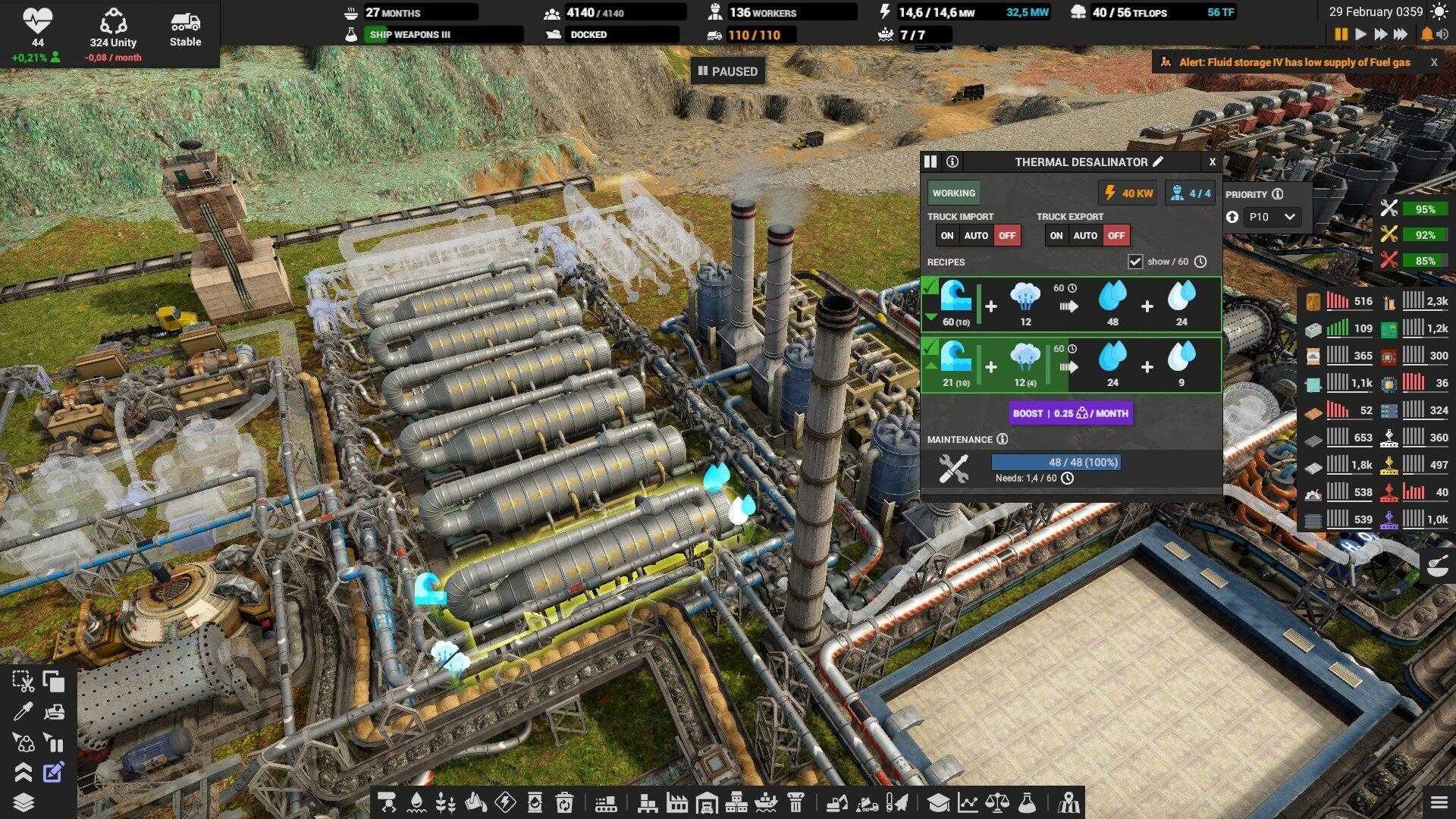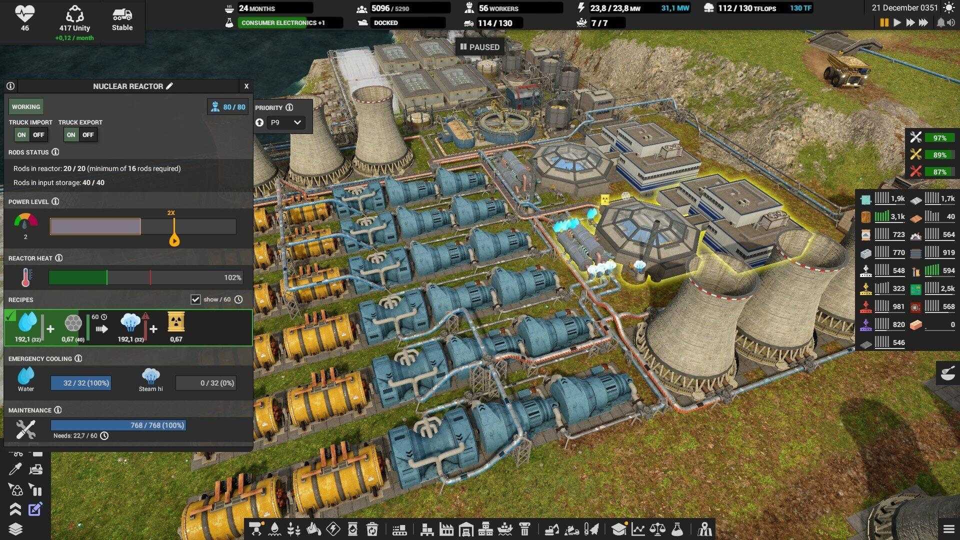 То есть, например атомная станция может работать только в 3 режимах и каждый режим даёт очень много энергии. Если её не получается использовать, то станция начинает перегреваться со всеми вытекающими. Так что турбинам подключенным к ней желательно выставить высший приоритет. Чуть ниже турбинам на ископаемом топливе и самый низший приоритет дизельным генераторам, которые являются самым неэффективным источником электричества