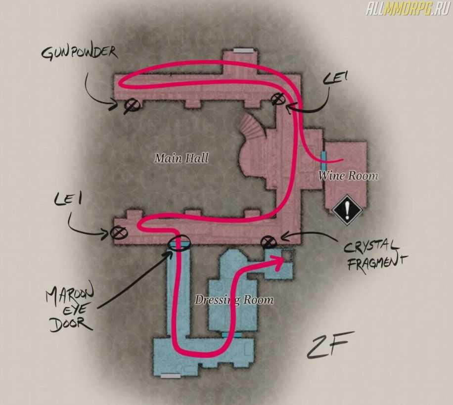 Пройдя через главную дверь, идите налево от комнаты к полкам и соберите лежащий вокруг порох. Это единственная добыча, которую вы найдете в этой комнате.