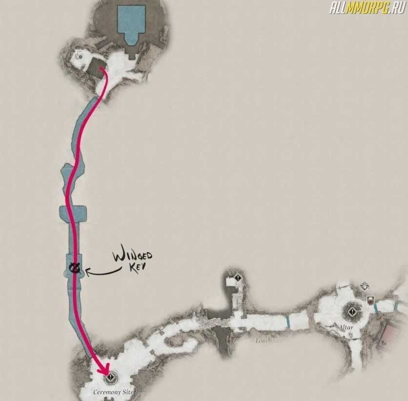 Берите ключ и открывайте им дверь на юге комнаты. Продолжайте двигаться по туннелю. Дойдя до конца, используйте переключатель, чтобы открыть дверь в зону проведения ритуала.