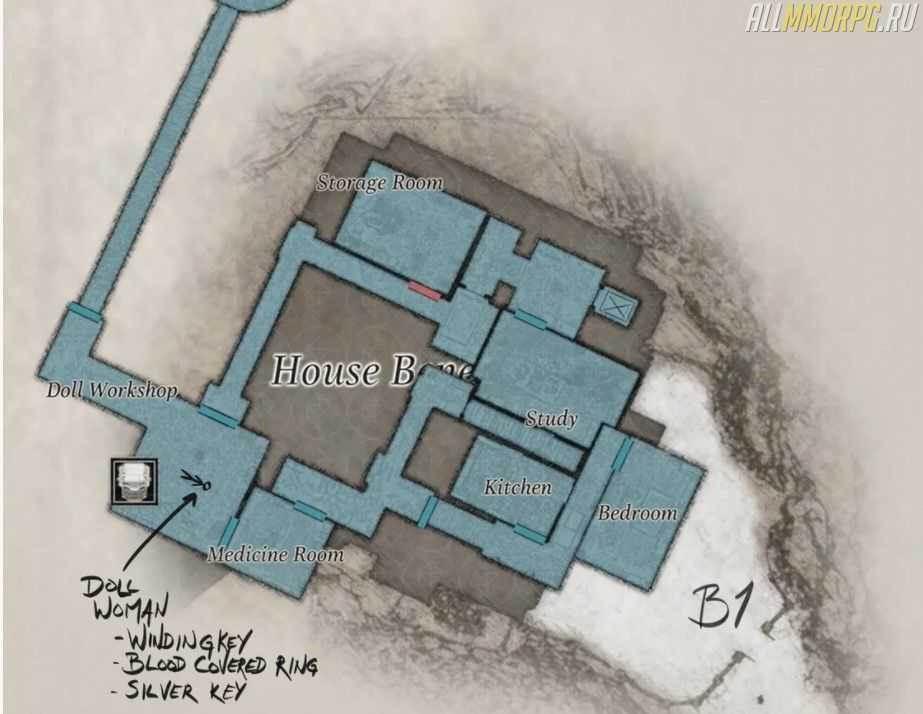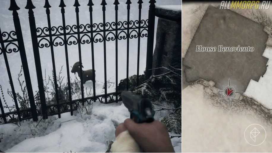 Прежде чем войти в дом, поверните налево от парадной двери. Спустившись с лестницы, вы найдете козий оберег за решетчатой оградой.