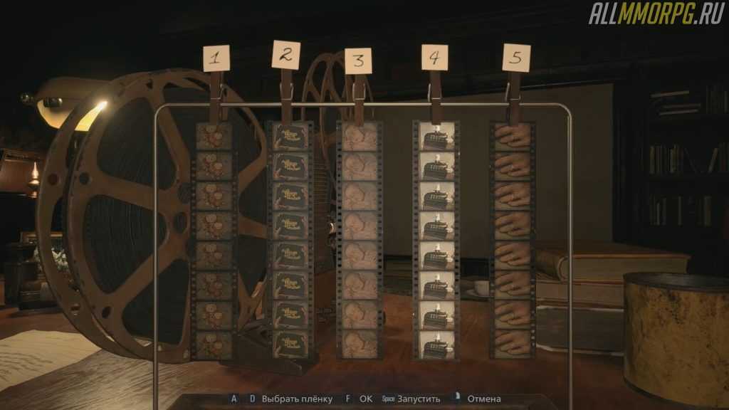 Теперь осмотрите проектор и подставку с фрагментами кинопленки. Чтобы решить эту головоломку, вам нужно разместить фрагменты кинопленки в правильном порядке.
