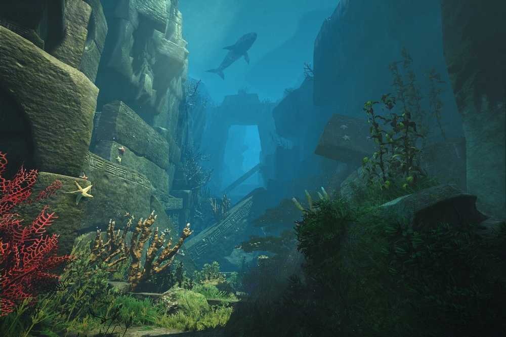 лес и добежать к берегу с морскими существами (находится на северо-западе) и