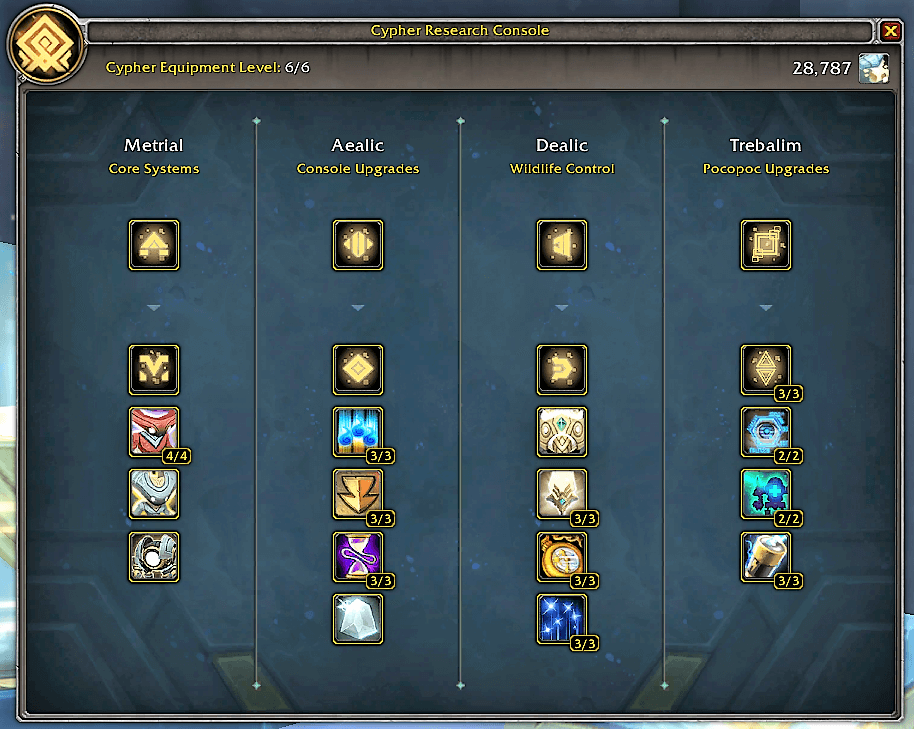 Прокачивая Шифр Предвечных, вы будет получать определенные улучшения для Зерет Мортиса — баффы, повышение уровня предметов за квесты в локации и т.д.