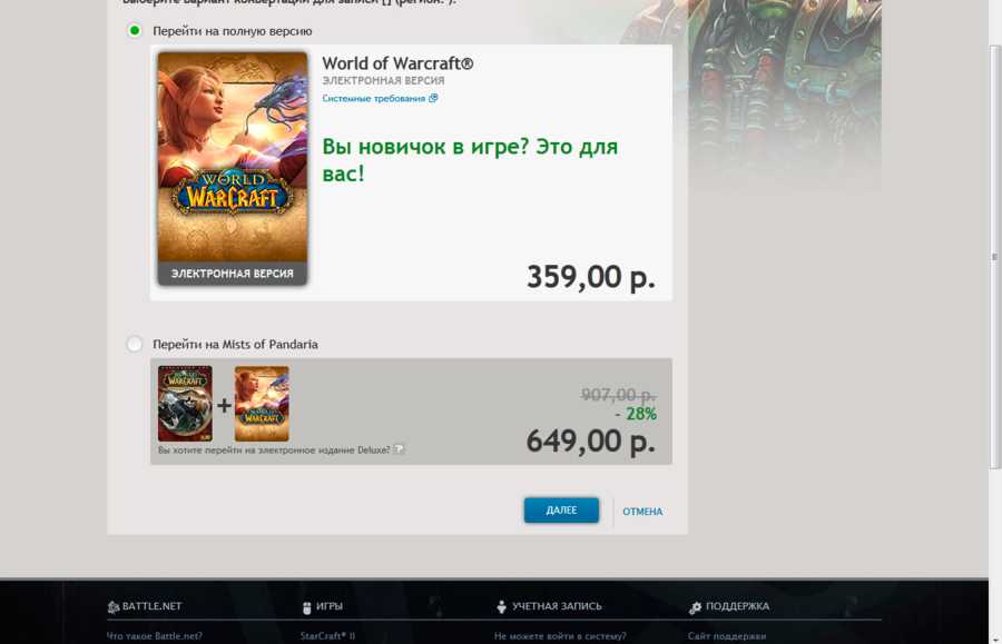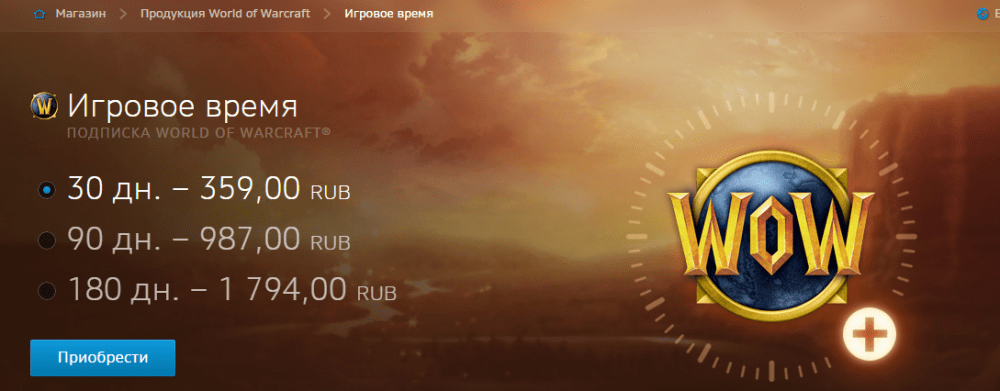 Таким образом можно оформить подписку на любую версию World of Warcraft