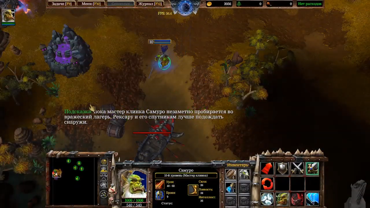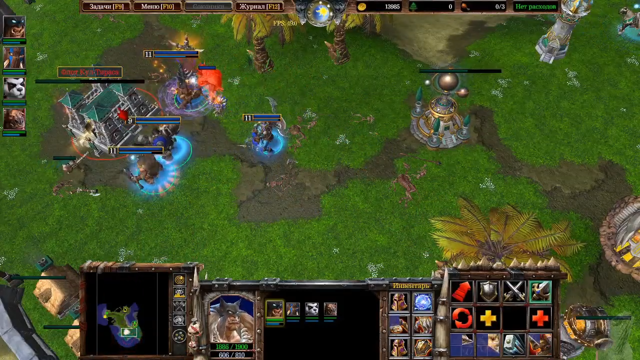 Вы снова вернетесь к Вол-Джину, потом пообщаетесь с Траллом и узнаете, что он вовсю готовится к войне. Вождь попросит вас найти ингредиенты для зачарования боевого знамени — они будут подсвечены на карте, сложностей не возникнет. После этого вам нужно будет вместе с силами орков напасть на базу Праудмура и уничтожить его замок. Вы сможете набирать войска с базы и покупать юнитов в специальных зданиях. Особых хитростей тут нет — просто продавливайте противника, используя мощь героев.