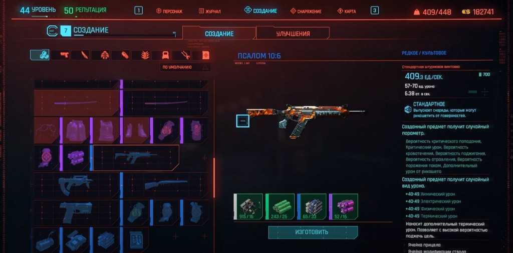 После получения документации необходимо перейти в меню «Создание», найти там «Псалом 10:6» и нажать «Изготовить».