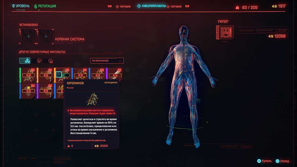 Как получить легендарный киберимплант Керезников в Киберпанк 2077 (Нервная система)