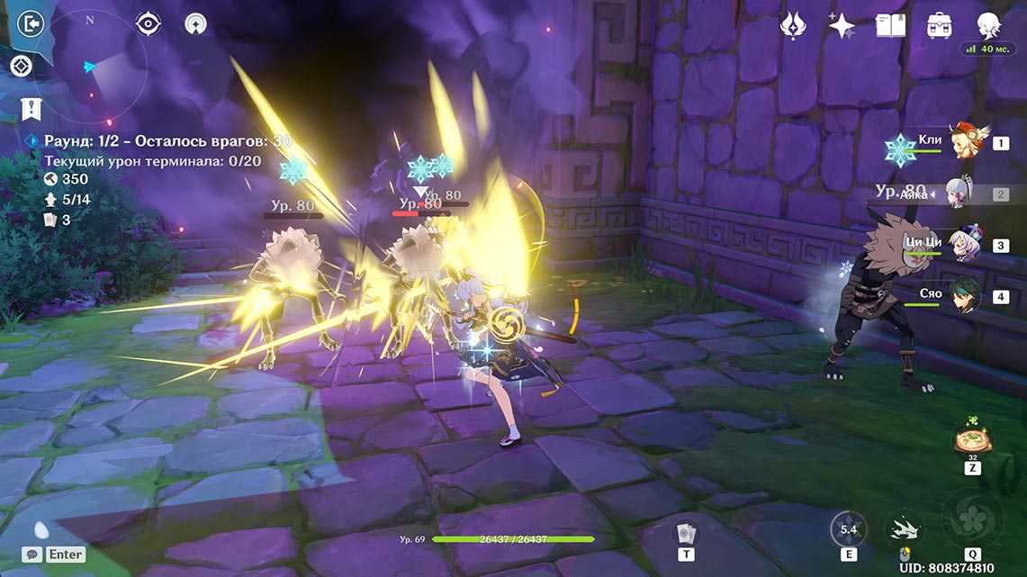 - Используйте персонажей, способных на частые элементальные атаки, опрокидывание, стан, стягивание или замедление мобов. Например, Аяку и Барбару, если хотите часто замораживать мобов;