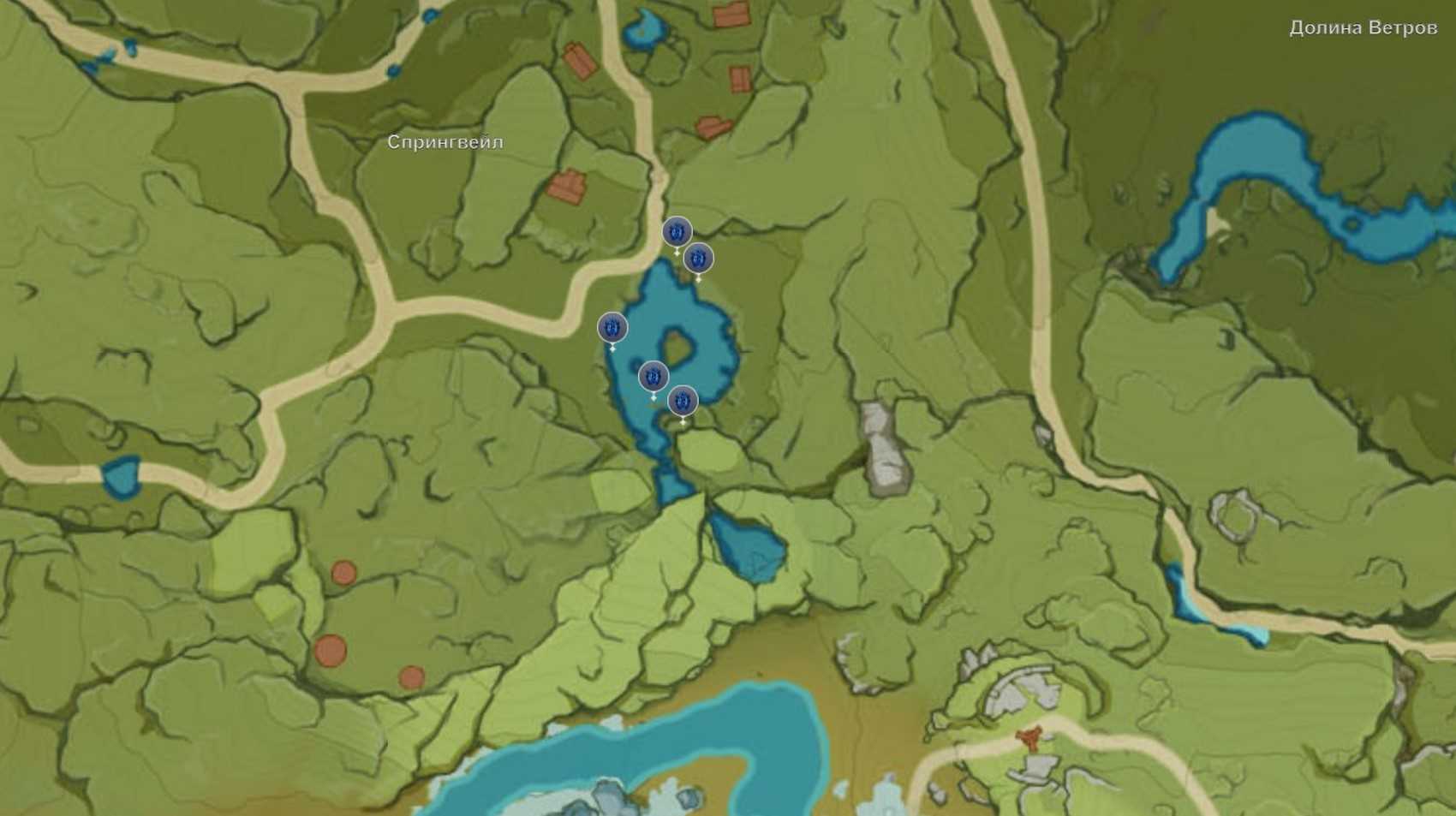 Синяя лягушка. Их можно отыскать в Мондштадте рядом с водоемами. Некоторые места обитания показаны на скриншотах.