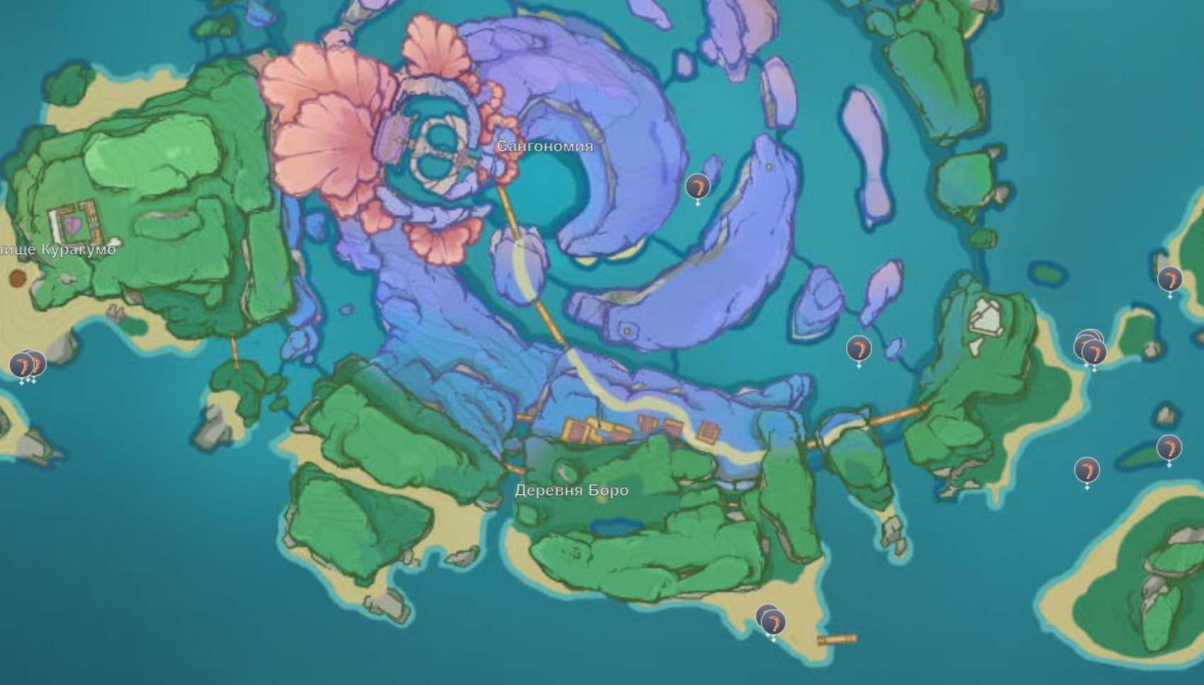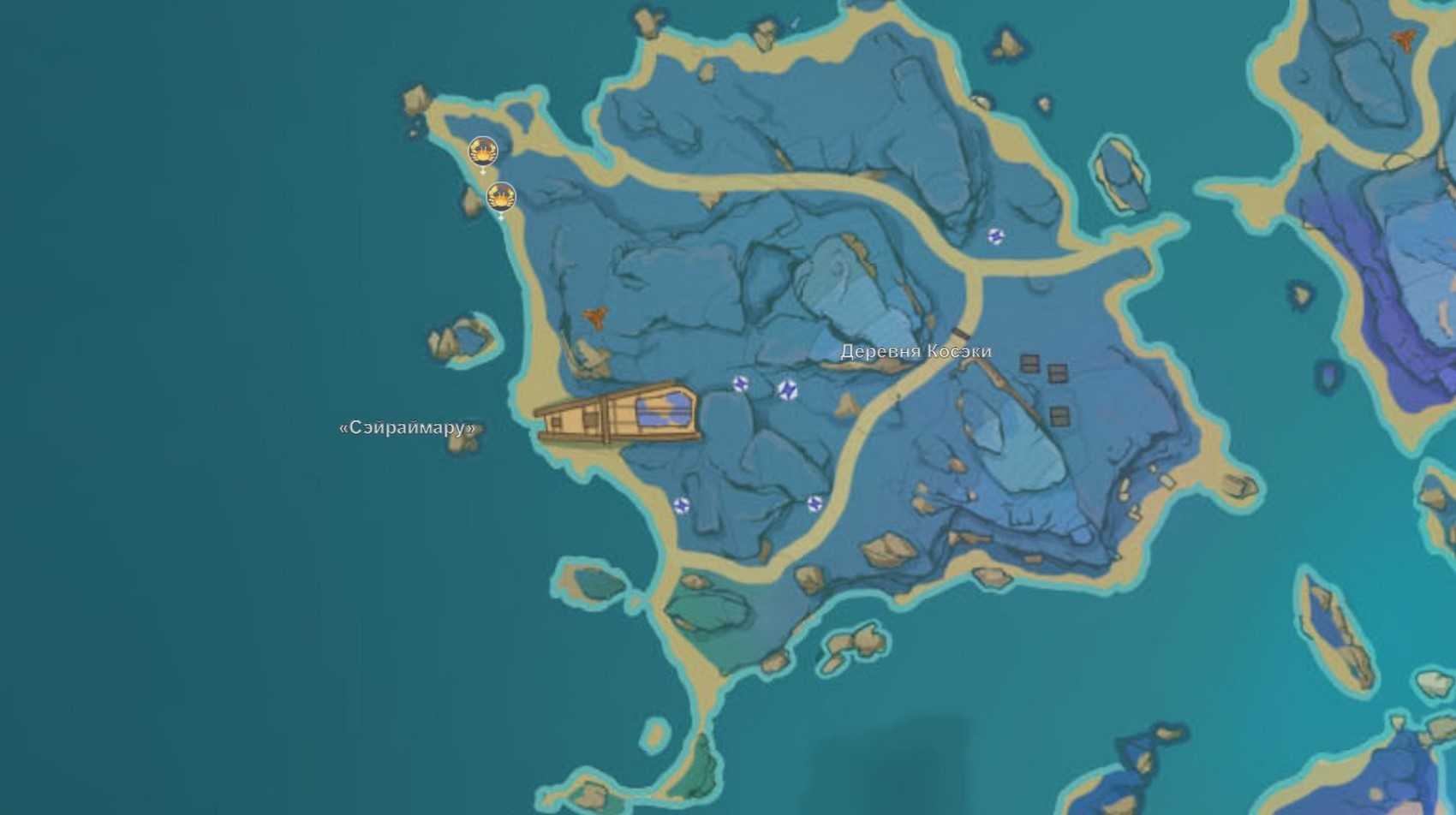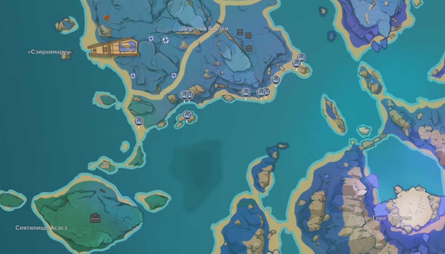 Краб-генерал . Обитает только в Инадзуме, на побережье. Лучше всего искать на острове Сэйрай. Места обитания показаны на скриншотах.