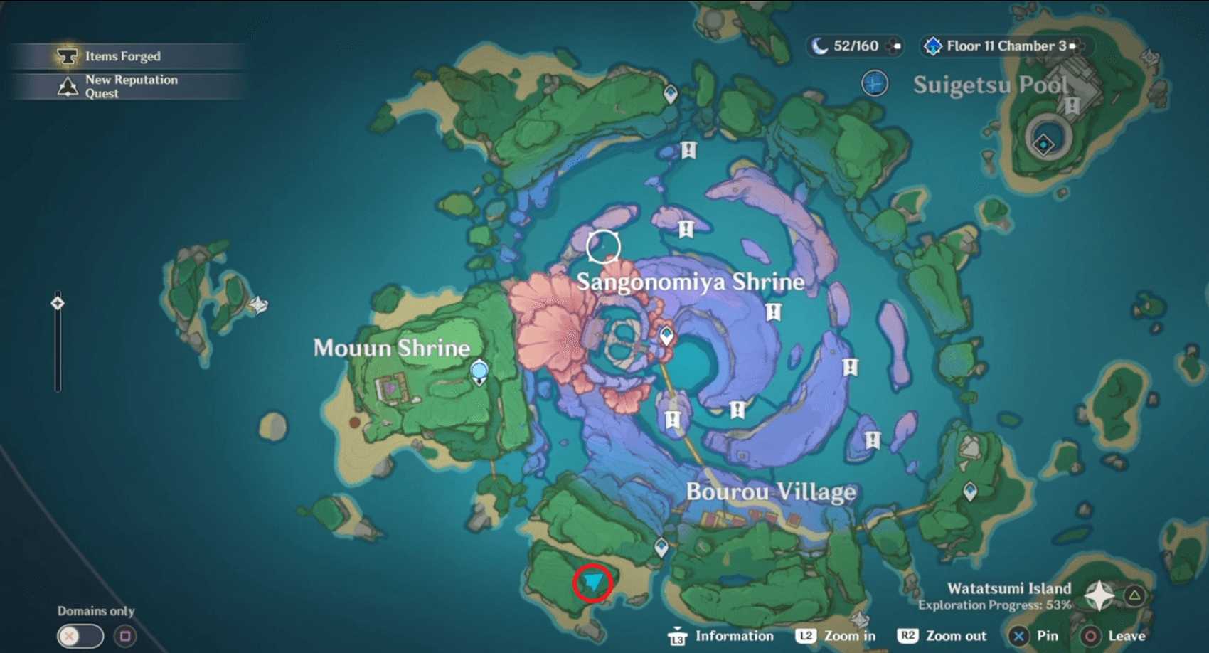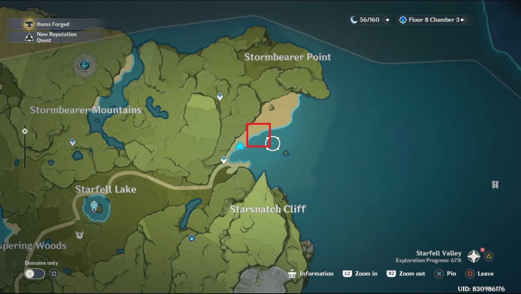 Красноперый унаги. Обитают только в Инадзуме, на острове Ватацуми. Некоторые места обитания показаны на скриншотах.
