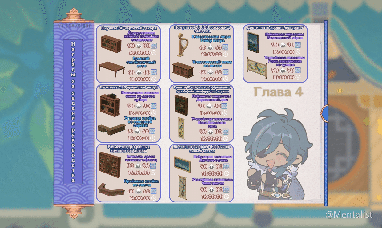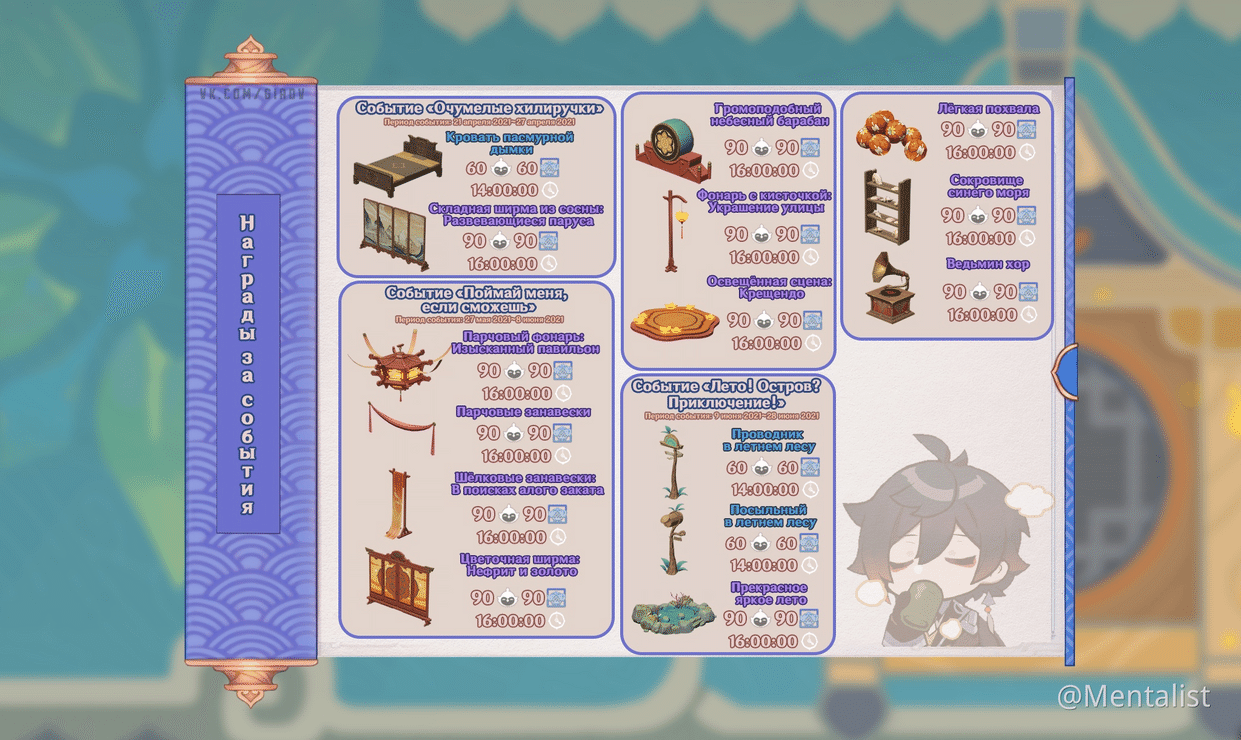 Иногда в ходе событий игроки получают в награду тематические чертежи и мебель, так что если вы хотите собрать всю мебель, которую может предложить Genshin, следите за новыми событиями.