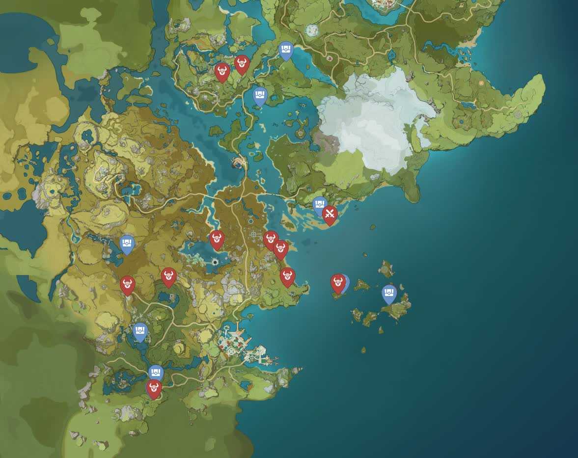 Агенты Фатуи дропают церемониальные ножи охотника, которые очень полезны при прокачке героев. Причем, после гибели они возрождаются, тем самым открывая возможность для бесконечного фарма. Правда, не думайте, что этот фарм будет простым. Каждый агент относится к разной стихии и использует уникальные способности — один уходит в невидимость и застает врасплох, другой призывает миньонов, третий телепортируется. Короче говоря, ради церемониальных ножиков придется попотеть. Вот только где найти этих агентов? Все еще проще, ведь у нас есть интерактивная карта.