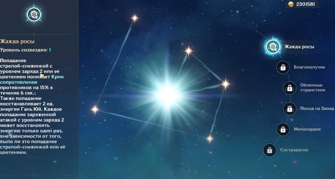 Из созвездий лучше всего второе, оно уменьшает время восстановления элементальных умений и взрыва стихии персонажей в группе.
