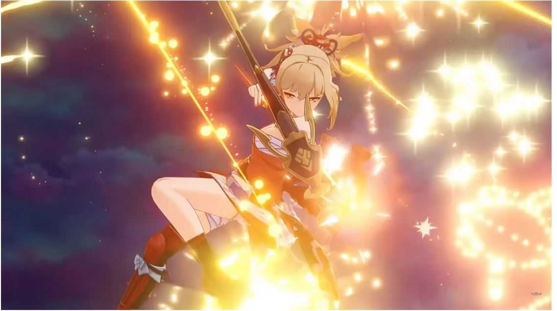 Конечно, ее сияющее оружие — это ее элементальный взрыв, который будет наносить большой AoE-огненный урон одиночным целевым врагам, и она может безопасно наносить им урон, используя мало энергии. Однако ее взрывные эффекты исчезают, когда она покидает поле.