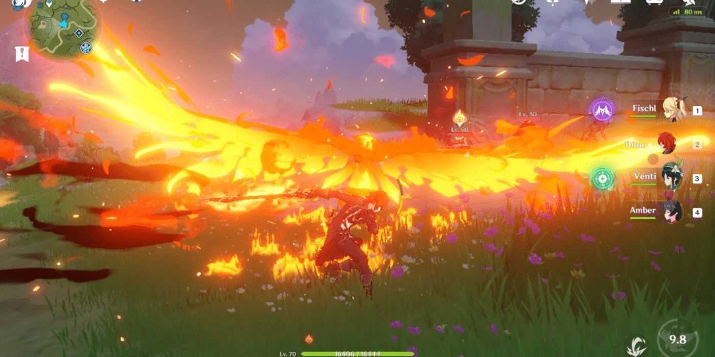 Следовательно, обычная практика перед запуском Рассвета состоит в том, чтобы переключиться на Синьцю или Каею и активировать их взрывы, чтобы цель Дилука получила гидро- или крио-статус. Только тогда вы должны выпустить этого гигантского пылающего орла, чтобы очистить этих надоедливых Хиличурлов. Некоторые даже превращают это в игру с числами, пытаясь достичь 100 000 урона от расплавления/испарения.
