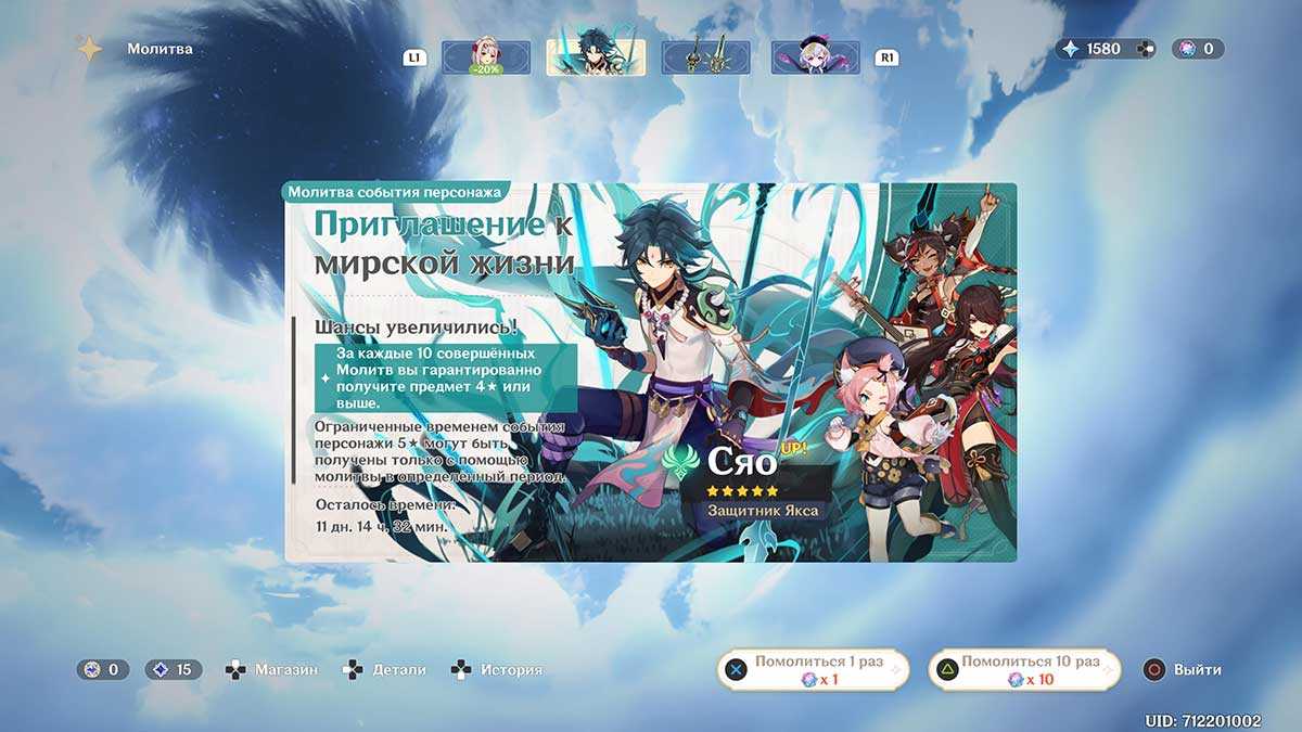 Войдите в главное меню и откройте раздел Молитвы. Там вы и найдете Сяо в списке приобретений. Для открытия этого персонажа вам потребуется удача и Переплетающиеся судьбы, которые можно купить в Магазине Паймон. Если у вас их нет, не беспокойтесь, в Молитвах в разделе Сяо можно обменять 160 Камней истока на x1 Переплетающую судьбу.