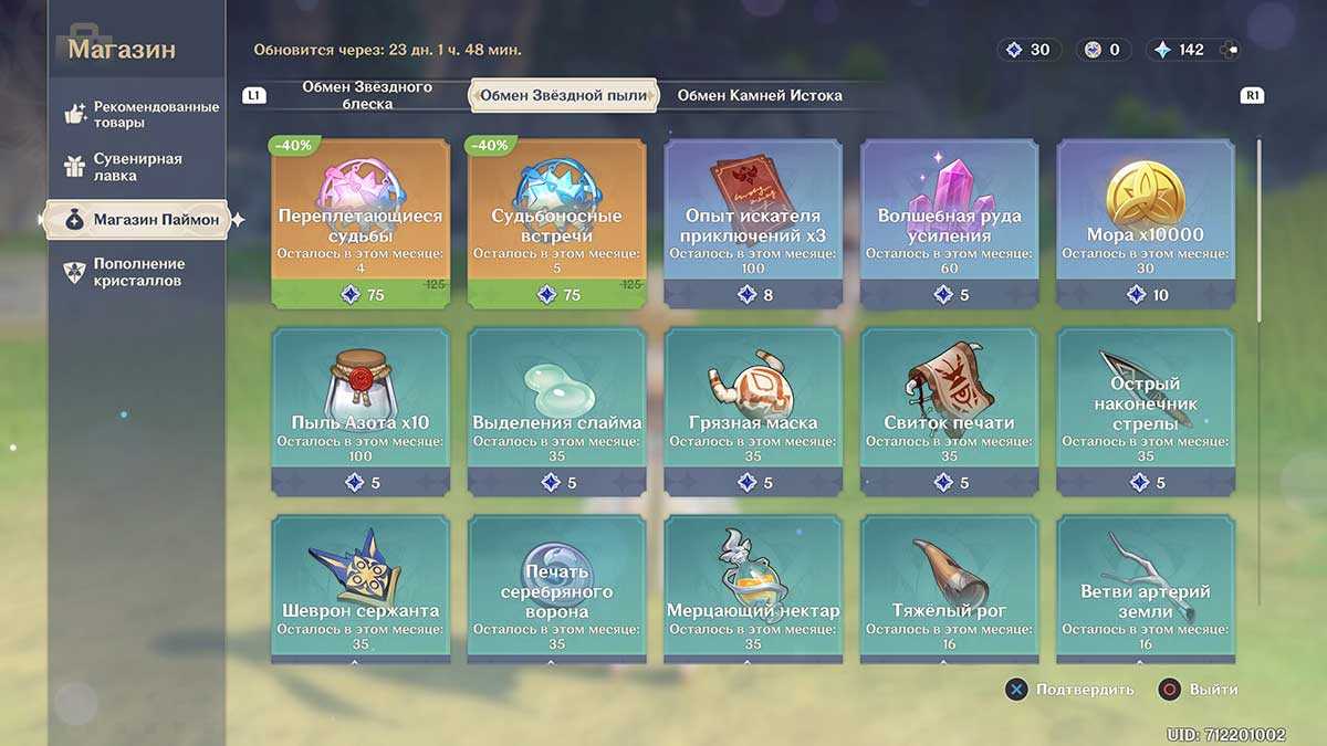 Если же говорить об основных характеристиках артефактов, то часы берите на HP%, кубок – на бонус Гидро урона или HP%, а корону (шапку) – на бонус лечения или HP%. Второстепенные параметры могут быть следующими: HP, восстановление энергии, мастерство стихии и АТК% – все зависит от ваших насущных проблем.