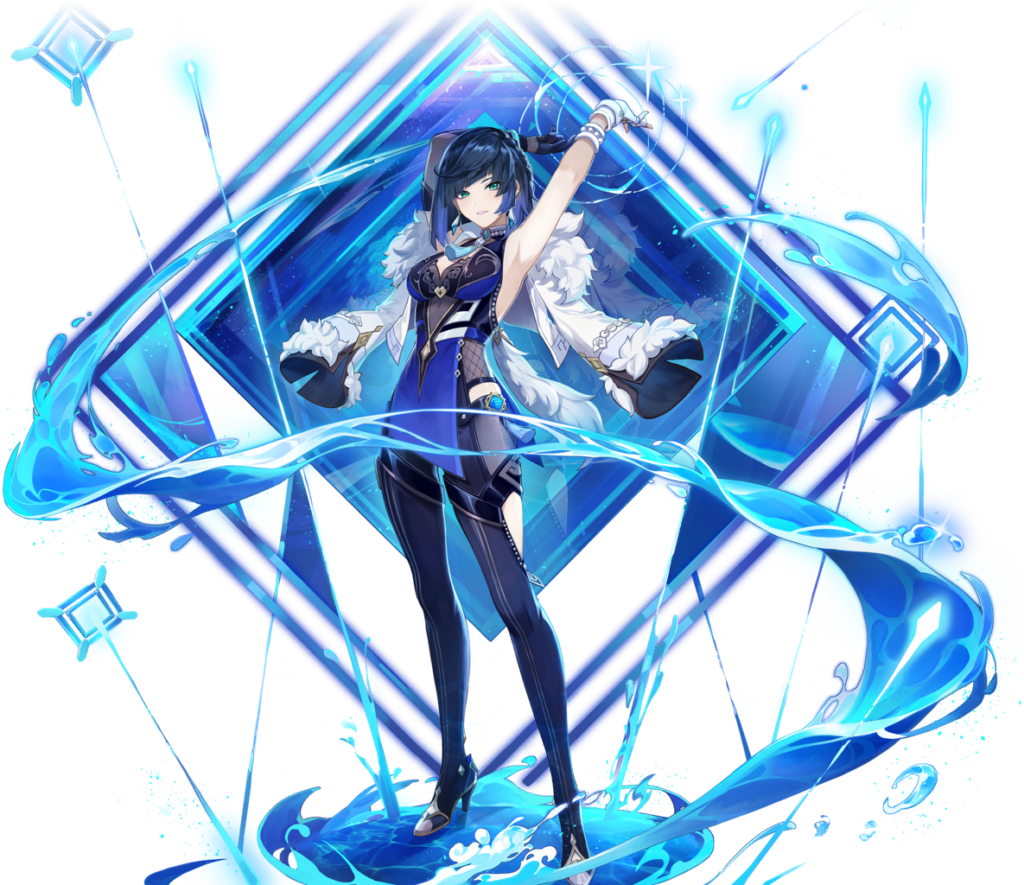 Использование стихийного взрыва Йелан мгновенно нанесет Гидро урон противникам рядом с ней, а затем создаст Изящный бросок в виде кубика Гидро, который поможет ей в бою.