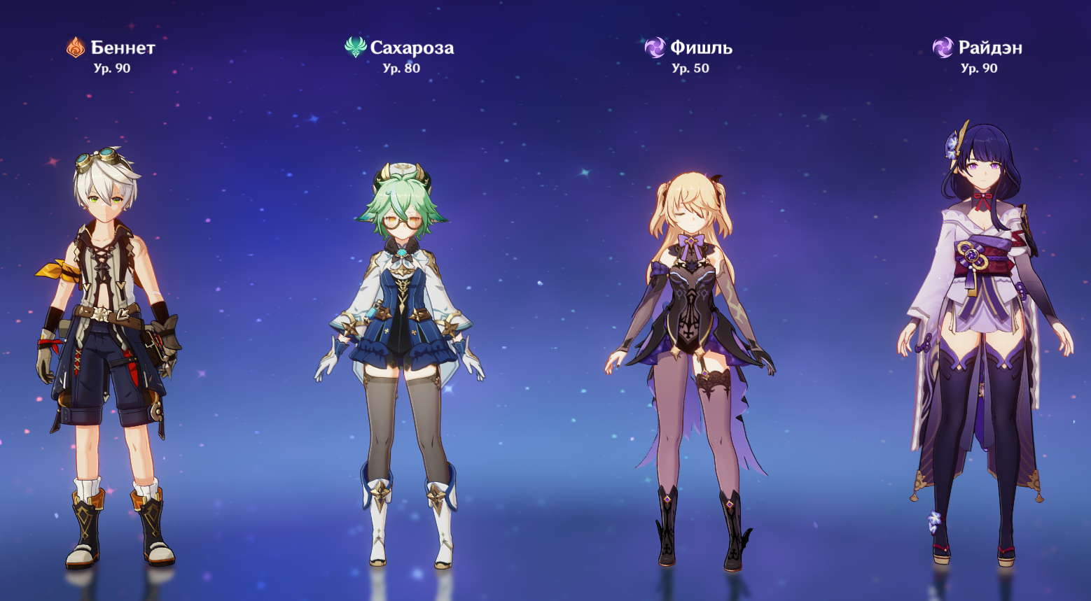 - Электро: Сайно, Фишль, Кэ Цин, Рэйзор, Яэ Мико;