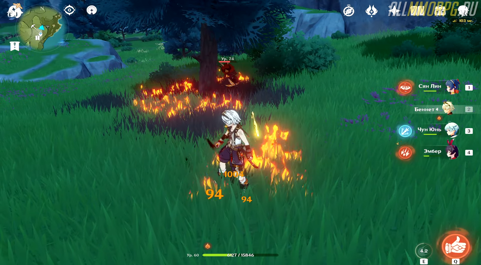 Ёимия / Син Цю / Сахароза / Тома. Здесь хитрость кроется в том, что атаки Ёимии, в отличие от Кли или Янь Фэй, не всегда активируют реакцию пара, потому волна Томы ничего нам не портит. Не активировали пар одной стрелой, не страшно – следующая точно нанесёт увеличенный урон, так как волна Томы ушла на перезарядку и не может помешать активации пара.