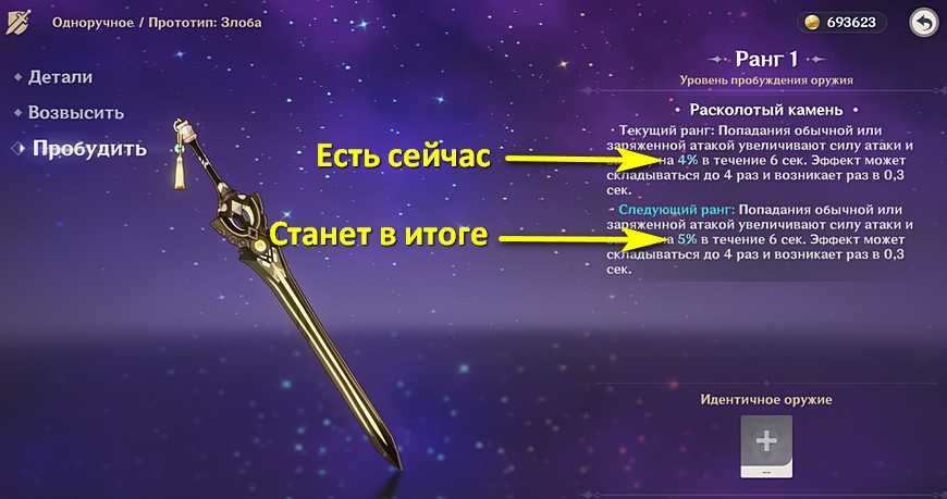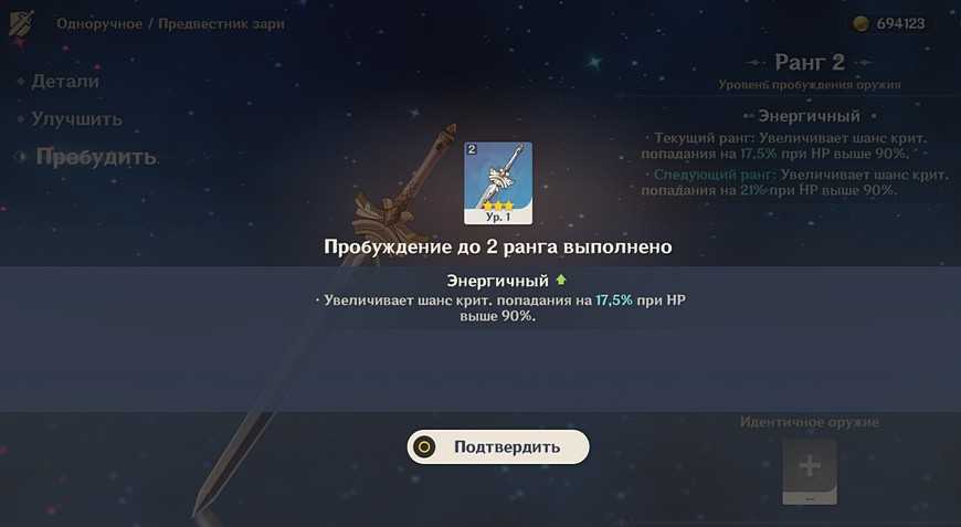 Для улучшения артефактов в Genshin Impact добавьте материалы улучшения вручную в список, нажав на них левой кнопкой мыши, либо нажмите кнопку «Авто», чтобы подобрать ресурсы автоматически. В соседнем меню можно указать тип материалов, который будет использоваться для прокачки. Например, «Материалы 4* и ниже» или «Материалы 3* и ниже».