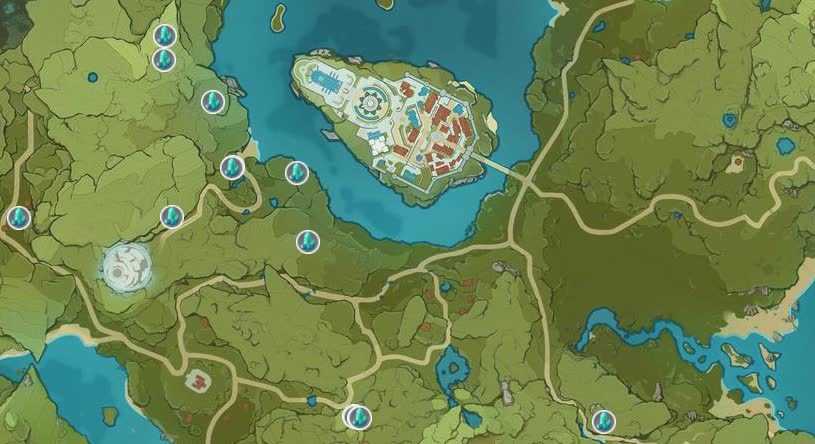 Одним из первых мест, в котором вы встретите обломки кристаллов, станет лагерь хиличурлов к югу от Спрингвейла — там вы посетите пещеру и соберете материалы. Да и вообще, прогуливаясь рядом с Мондштадтом вы неоднократно столкнетесь с месторождениями обломков кристаллов. В основном они сконцентрированы на юго-западе от города.
