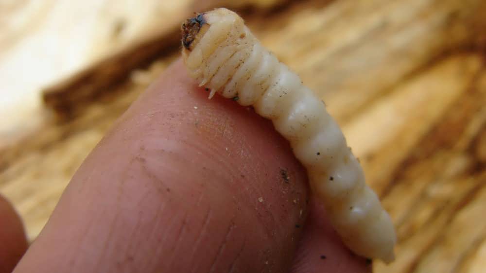 Найти личинку не так сложно. Первый способ добычи доступен преимущественно жителям частного сектора, которые по старинке отапливают свои дома дровами. При распиле и колке дров периодически попадаются не совсем свежие, лежалые и чуть трухлявые деревья. С точки зрения теплоотдачи для дома это, конечно, плохо. Но с позиции рыболова — это вполне приемлемо, т.к. под корой и в толще таких деревьев можно найти эту ценную наживку (фото 18).