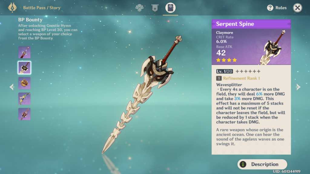 Используется: Чжунли, Путешественником, Бэйдоу, Синьцю, Синьянь.