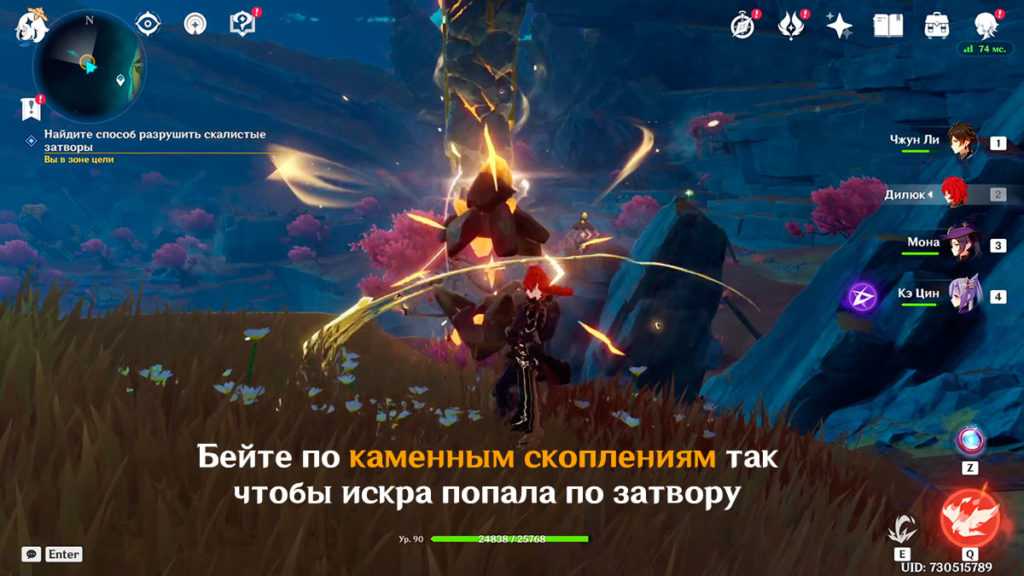 Чтобы запустить цепочку квестов, необходимо поговорить в лагере исследователей Разлома с Му Нином, он расскажет о том, что вас долго ждал и вы нужны ему для выполнения задания. В этом здании мы познакомимся с Чжи Цюн которая расскажет про скалистые затворы Цисин и как их снять, этим мы и будем заниматься в ходе всего квеста. Более подробно я расписал это задание в отдельной статьей для удобства.