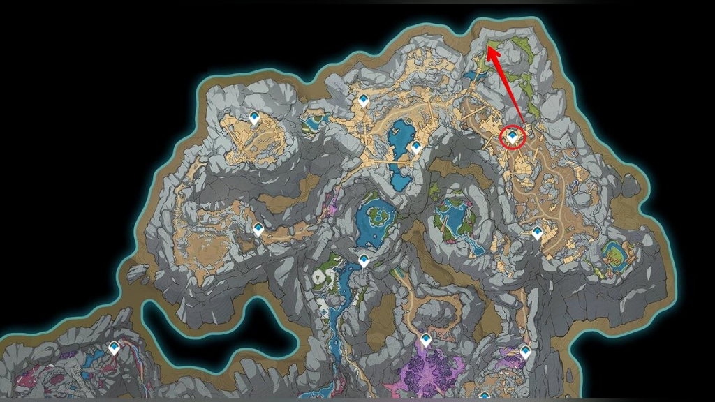- Направляемся к телепорту, расположенному слева от Основной зоны добычи.