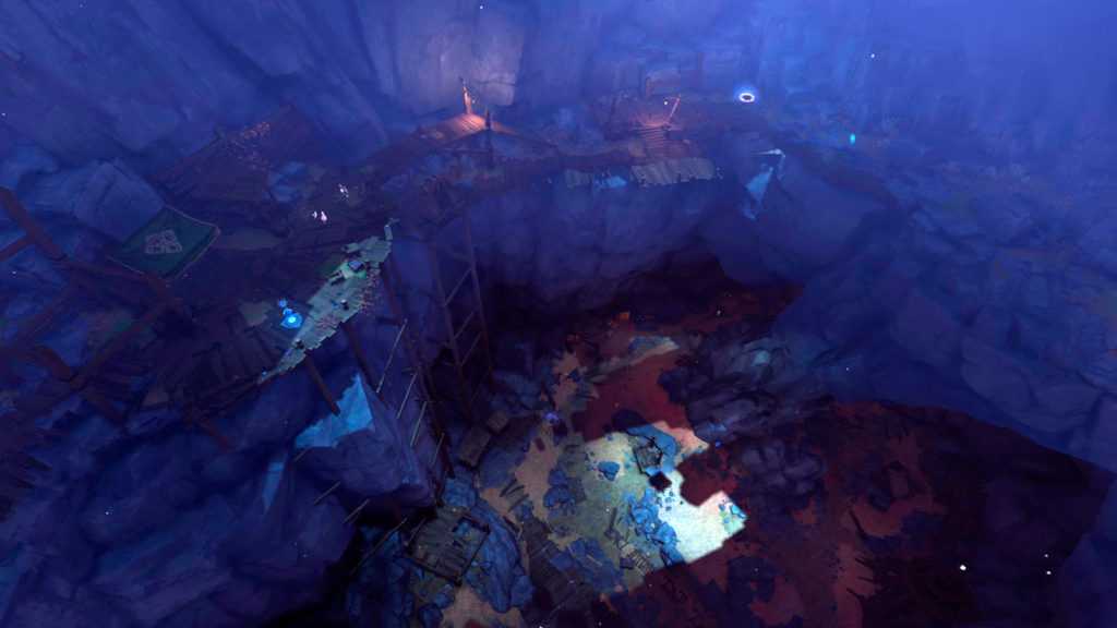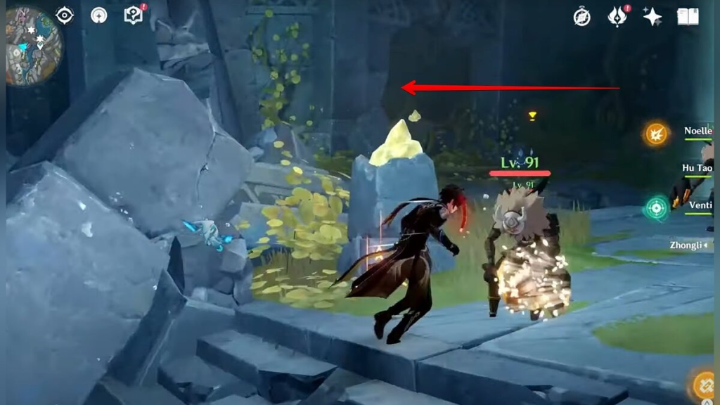 . Пройдите через образовавшийся проход, чтобы углубиться в Разлом. Не забывайте открывать сундуки по пути и собирать светоносные кристаллы. В конце концов, вы выберитесь из туннеля в просторную область. Рядом будет стоять телепорт.