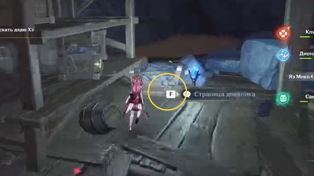 - Экипируем Адъювант светоносного камня и отправляемся на поиски дяди Хэ. На его местоположение укажут страницы из дневника.