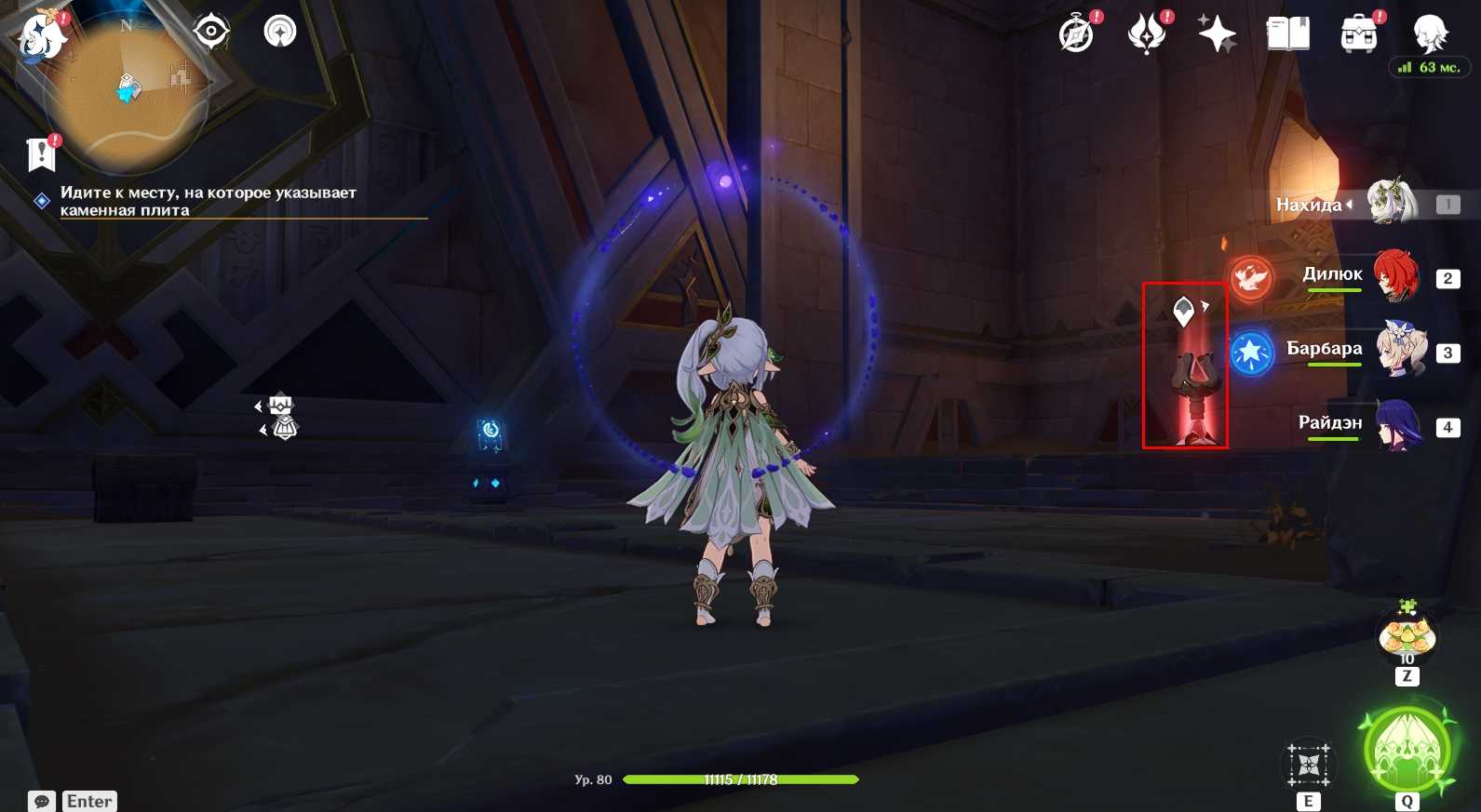 После активации всех устройств посмотрите небольшой ролик, а затем вступите в схватку с Чтецом бездны. Напомним, что против него неплохо работает реакция Заморозка (Гидро + Крио). Расправившись с противником, снова пообщайтесь с Чжи Цюн.