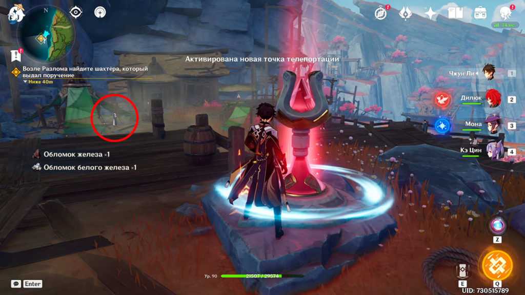 Первое с чем нам предстоит столкнуться — снятие скалистых затворов Цисин и открытие входа в Разлом. На это вам может потребоваться кое какое время, особенно если вы ещё не открыли разлом и не активировали точки телепорта. Чтобы запустить цепочку квестов, поговорите с Му Нином, который находится недалеко от входа в лагерь шахтёров.
