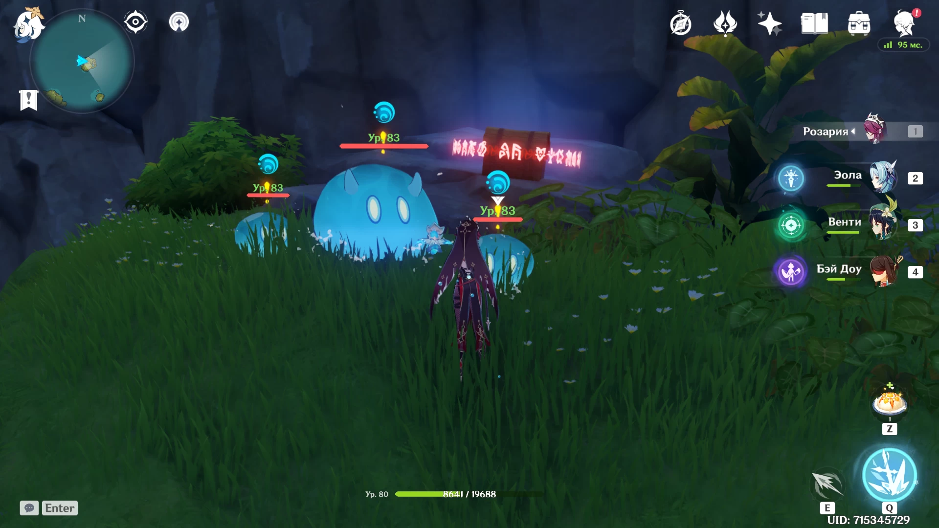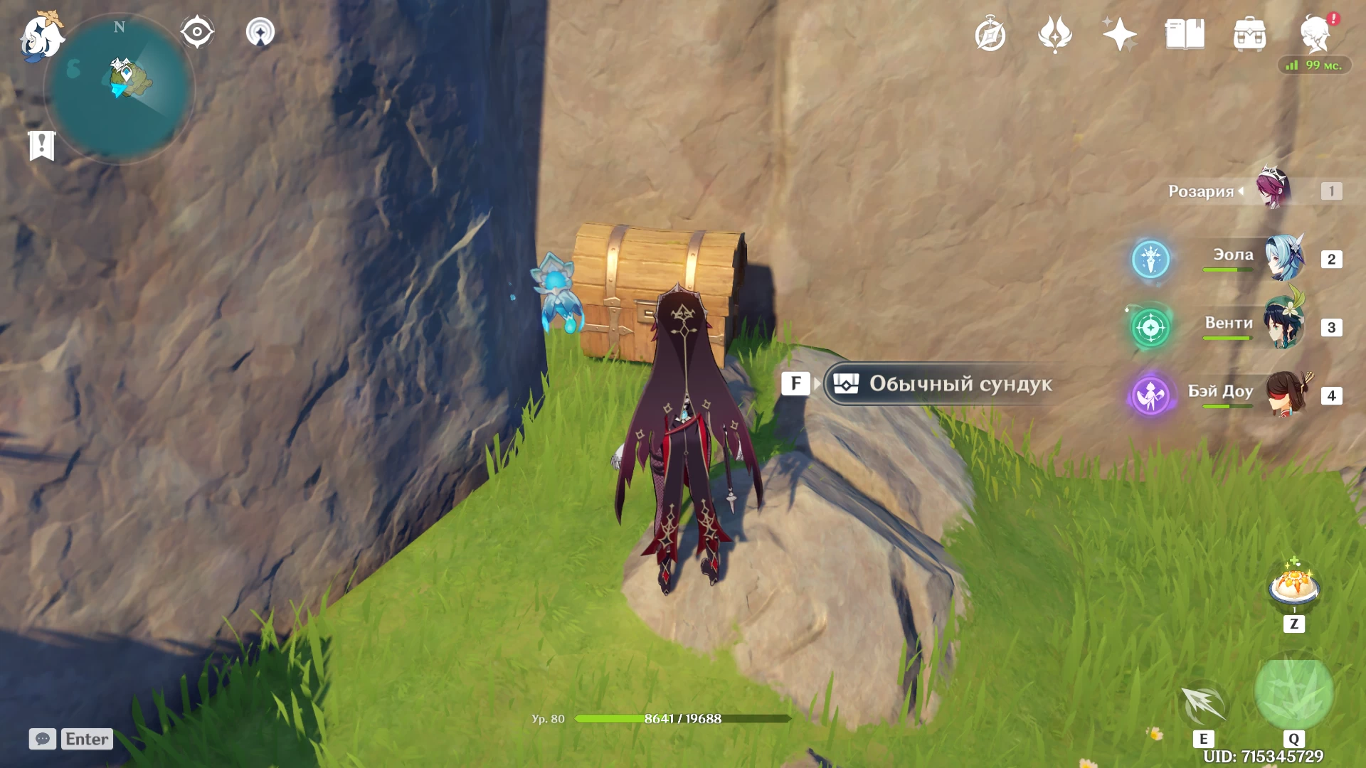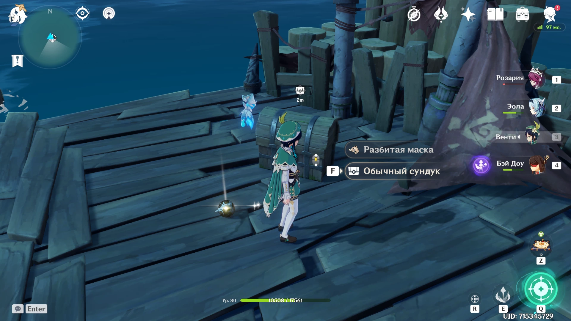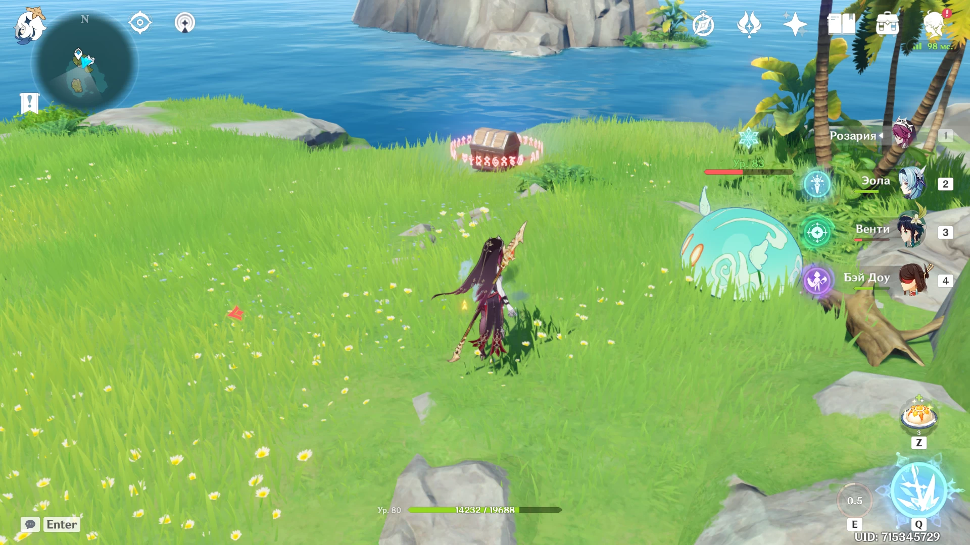 2 сундук (богатый): находится на Опасном острове, охраняют анемо слаймы.