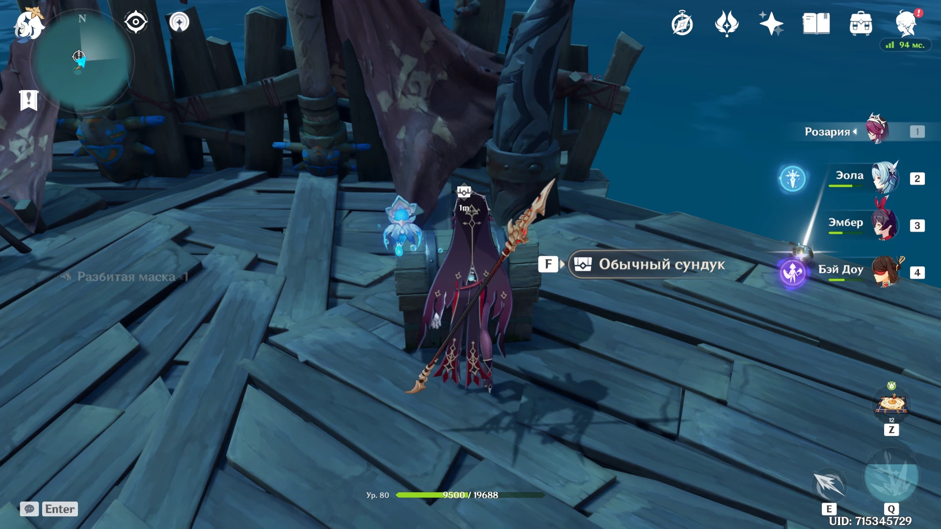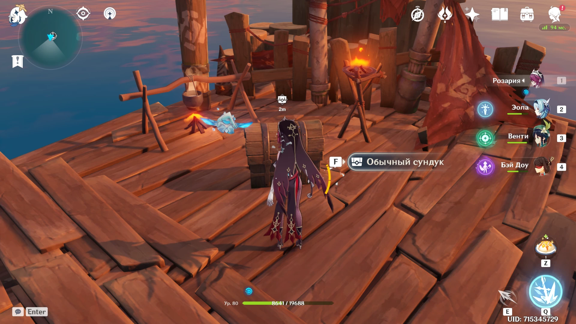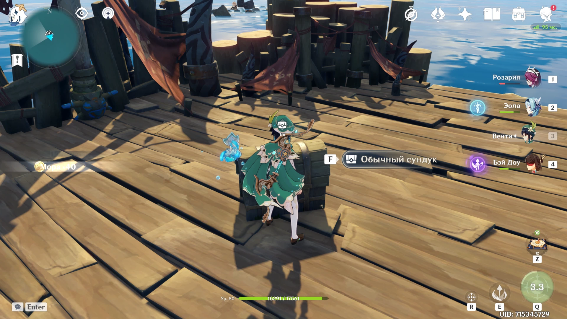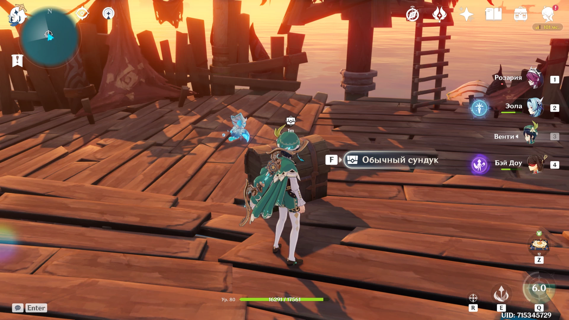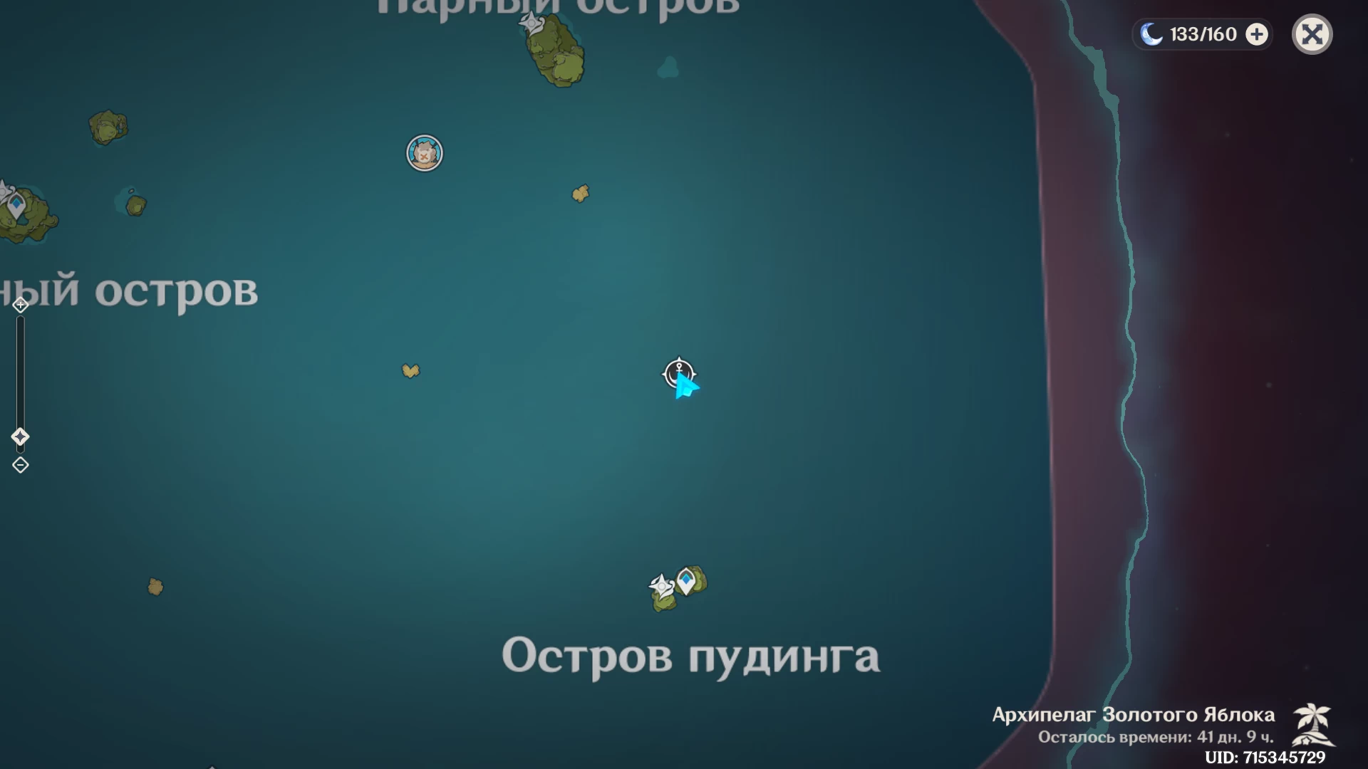 1 сундук (обычный): находится на юго-западе от острова Пудинга на морской базе хиличурлов. Убиваем и забираем.