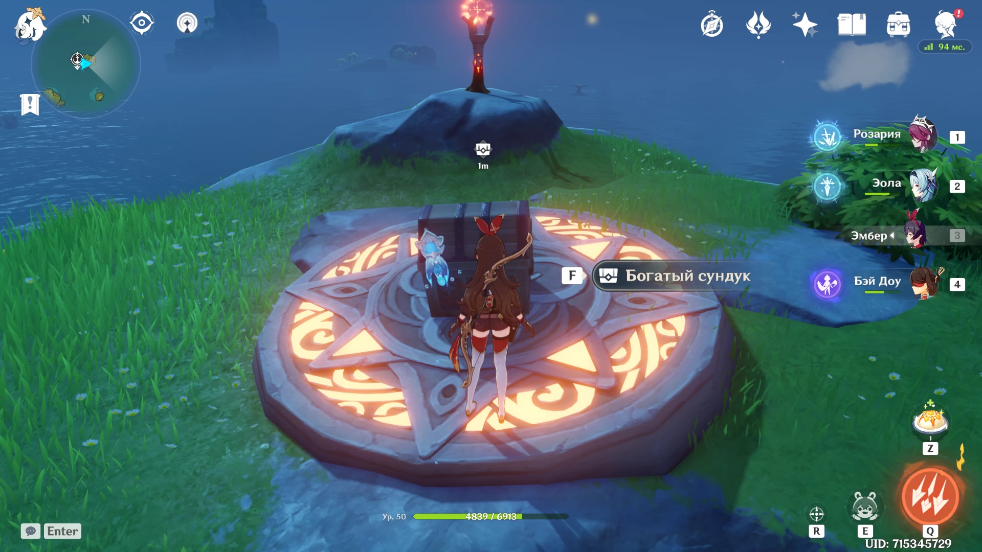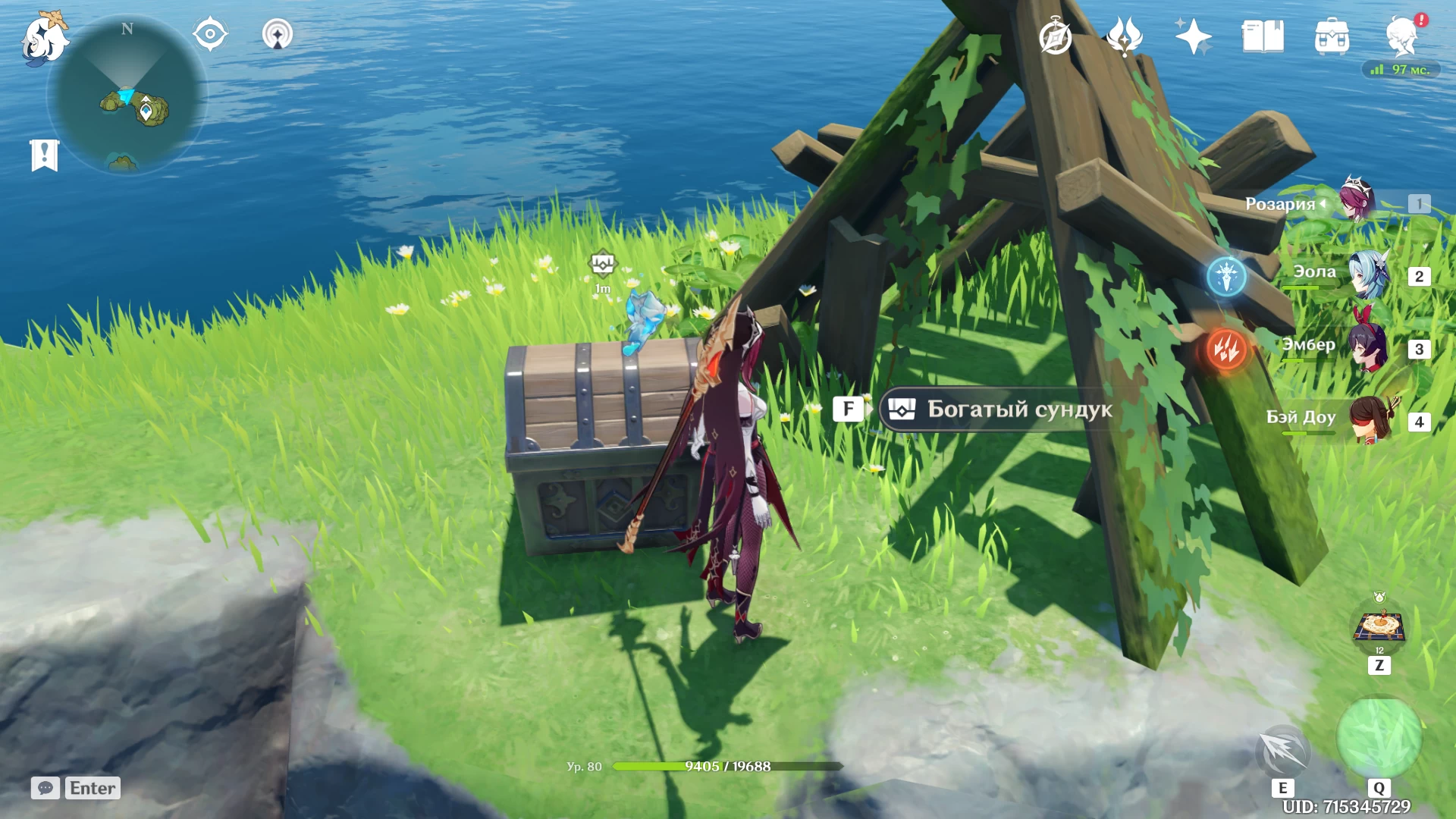 3 сундук (богатый): можно найти южнее Опасного острова на небольшой отмели. Чтобы открыть нужно активировать две колоны в воде (крио и пиро).