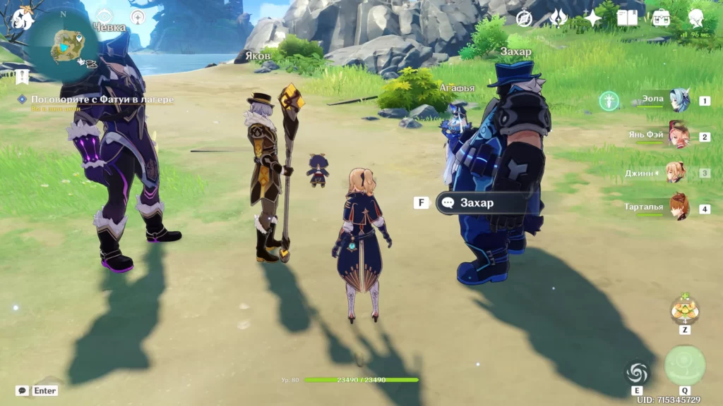 Для этого вам необходимо вначале пройти прошлые задания линейки под названием «Потерянная фотография» и «Выброшенный шеврон». После этого направляйтесь на острове в центре архипелага Золотого Яблока. Там вы обнаружите лагерь Фатуи с четырьмя ранее спасенными вами бойцами. Подойдите к ним и вступите в диалог с любым персонажем.