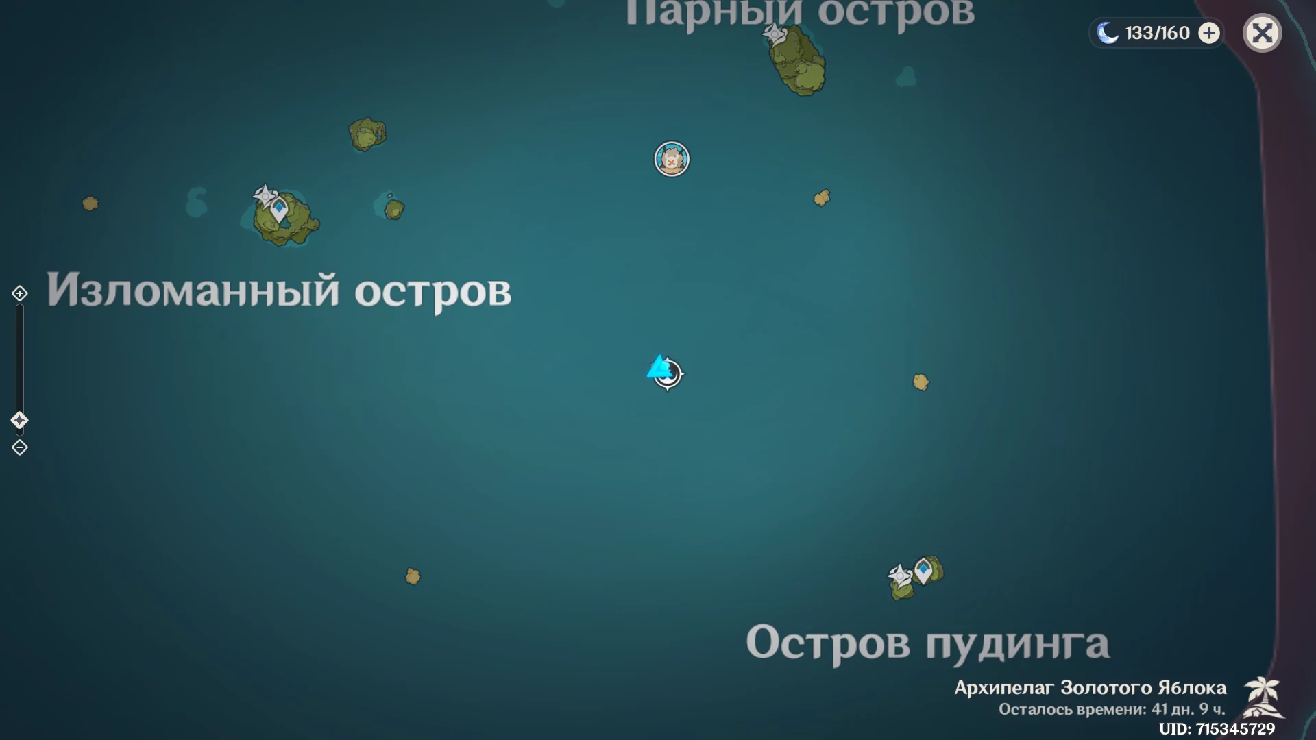 17 сундук (обычный): на базе хиличурлов между островом Пудинга и Парными островами.