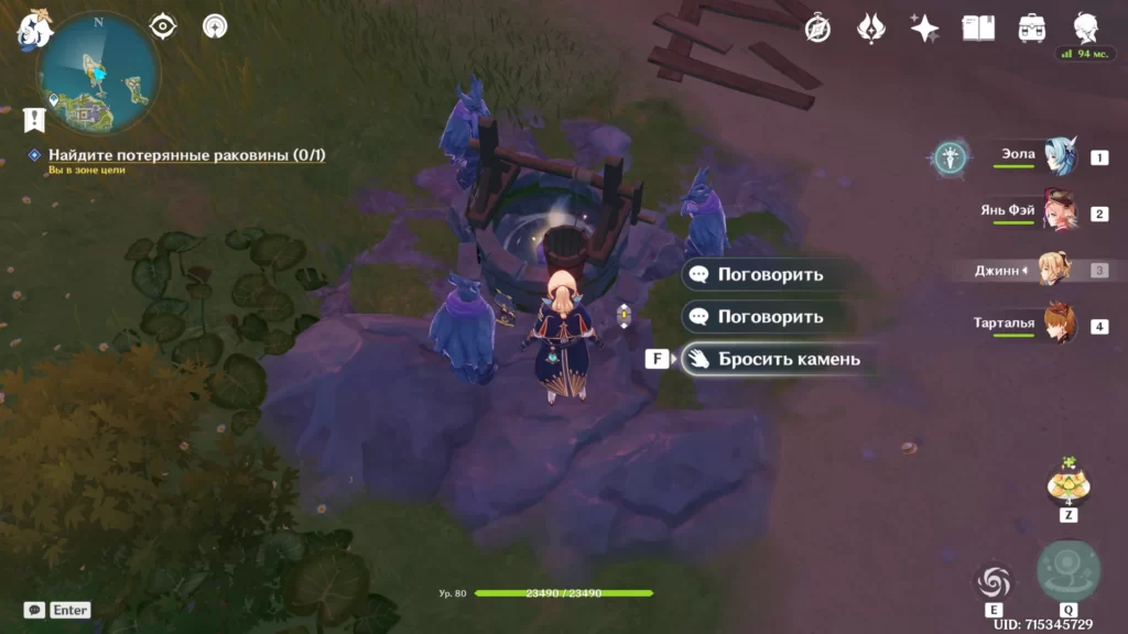 Подойдите к коробкам в центре лагеря, чтобы изучить лежащую на них раковину образов. Затем поговорите с Фатуи, чтобы узнать, где можно найти оставшиеся потерянные раковины на архипелаге. После беседы с ними на карте появятся отметки, указывающие на необходимые локации. Ниже мы подробно расскажем вам, как добыть необходимые предметы.