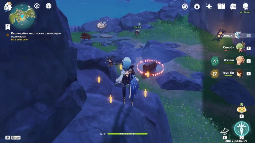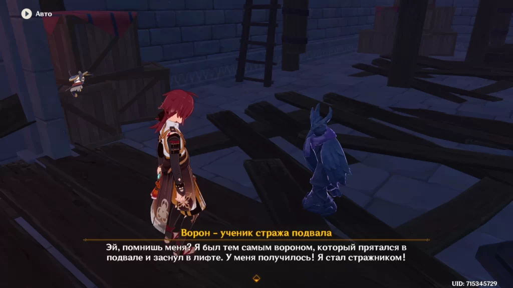 Сначала поговорите с ним у входа внутрь рифа. Ворон просит вас избавить его от хиличурлов, поселившихся внутри рифа. Прыгаем внутрь.