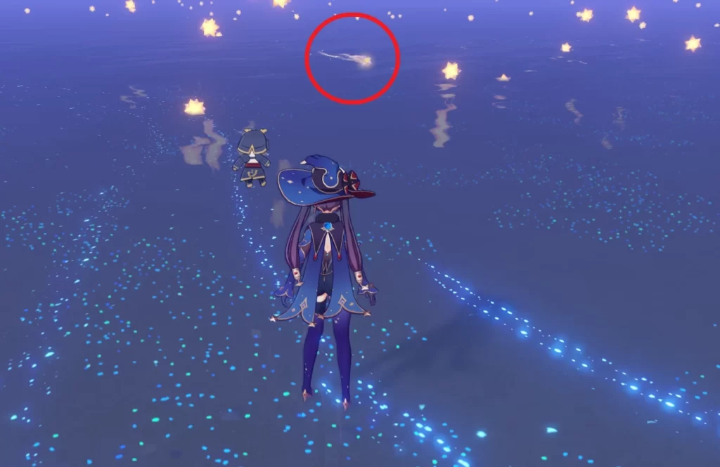 Следуйте по дороге на юг, идущей вдоль реки. По пути вы встретите несколько хиличурлов и митачурлов, но они не представляют особой опасности. Затем идите по дороге на север и через пару минут сверните на северо-запад – вы увидите водопад справа от вас. С правой стороны находится геокул, который можно собрать, немного поднявшись, а потом спланировав вниз.