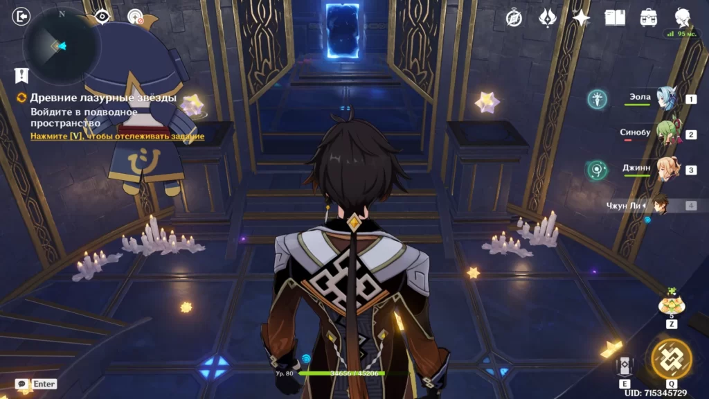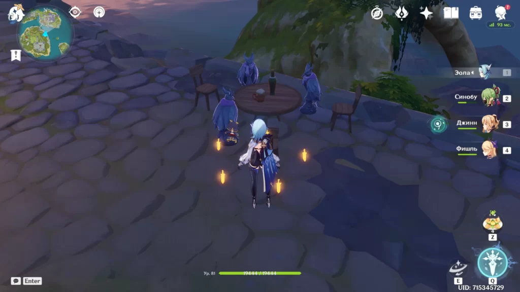 Син Цю решит помочь нам, поэтому мы сможем взять его под свое управление. Речь идет о Гидро герое, использующим одноручный меч. Первым делом советуем разобраться с рядовыми мобами, а уже потом браться за электро мага цицинов. Против этого врага следует использовать Крио или Пиро атаки.