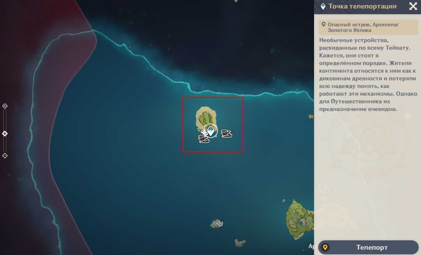 | На карте архипелага кликните по любой доступной точке телепортации и перенеситесь туда | ![]() |