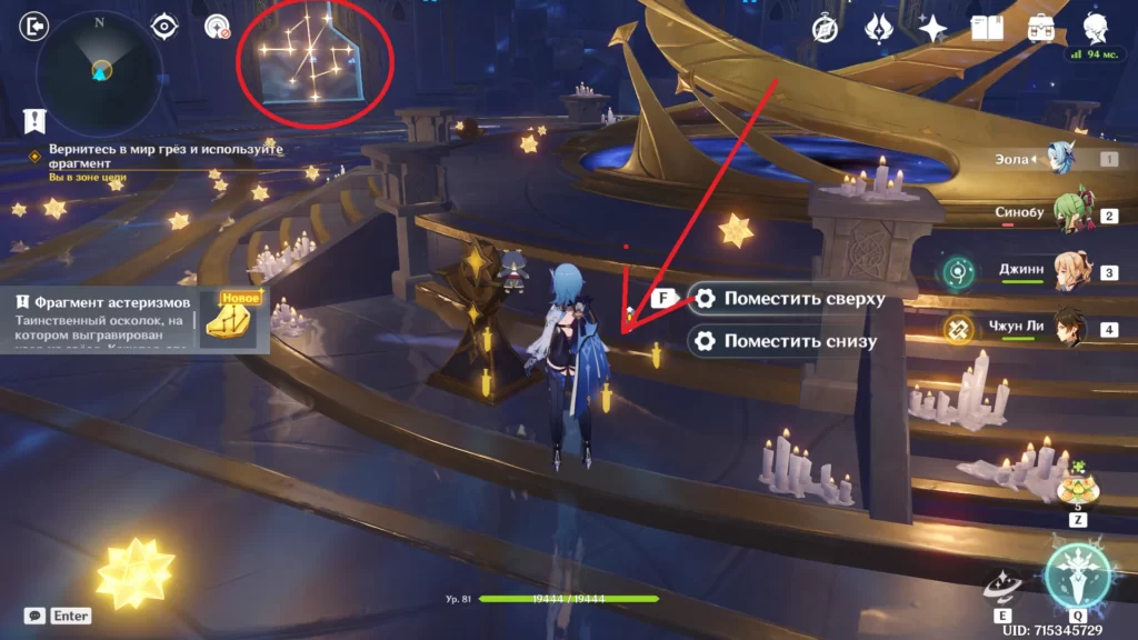 Стрелкой показано место, где лежит фрагмент. Кругом отмечены нужные сейчас врата.