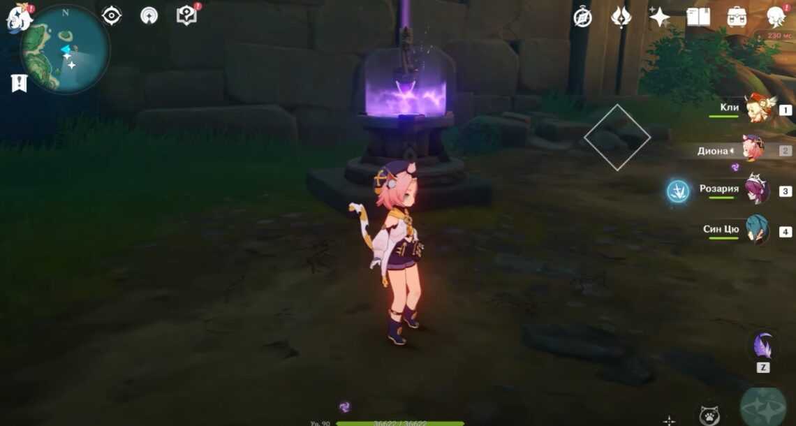 В конце вам останется активировать еще один зонд. Для этого подойдут некоторые Электро герои, в том числе Бэй Доу — просто воспользуйтесь ее элементальным умением рядом с последним зондом. Если у вас нет Бэй Доу или других героев, которые умеют накладывать на себя Электро статус, вы можете получить его от феи, просто дотронувшись до нее. Когда активируете все зонды, вас дадут доступ к драгоценному сундуку. Напомним, что зонд нужно установить в такое положение, чтобы он совпадал со стрелкой у своего основания.