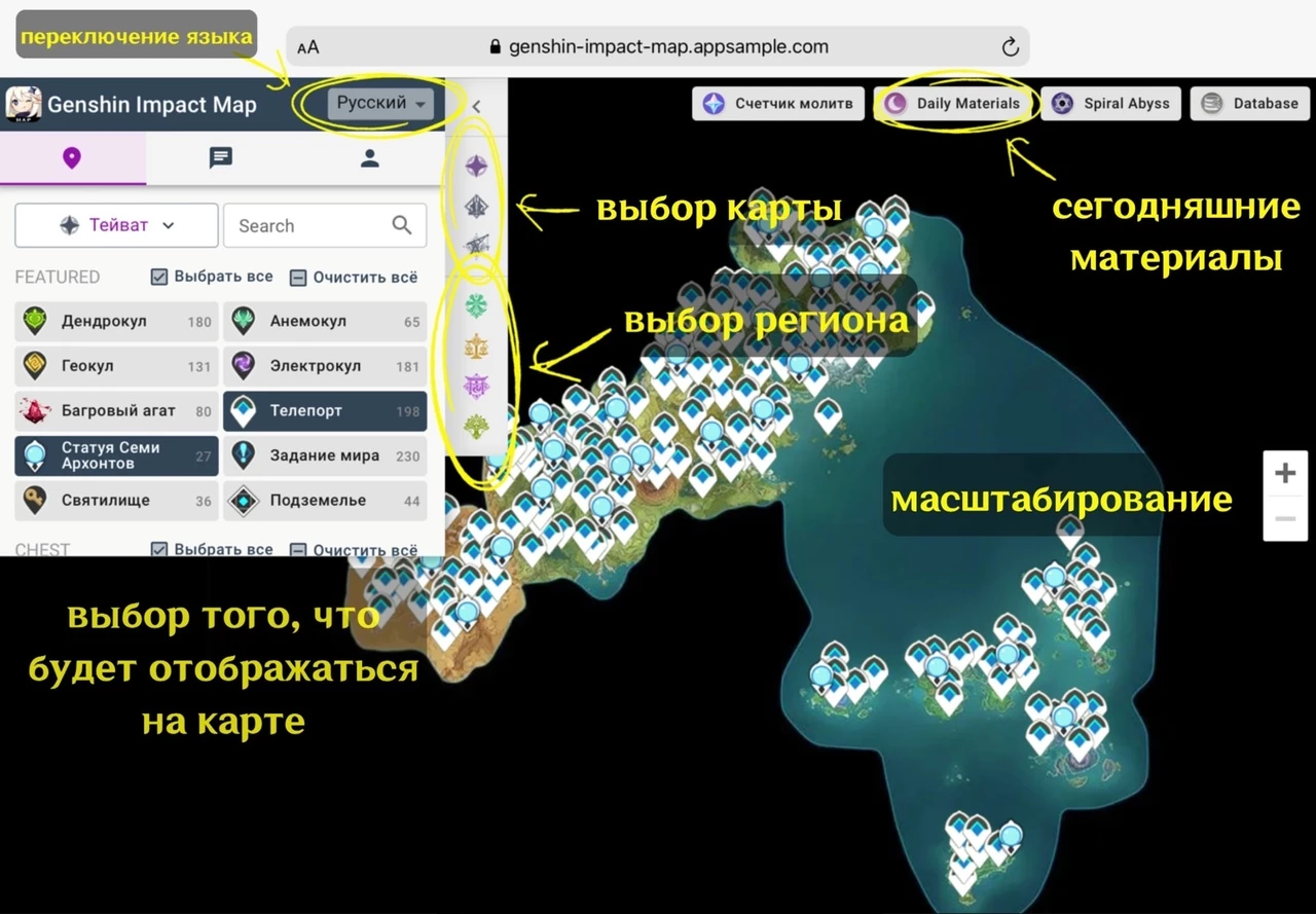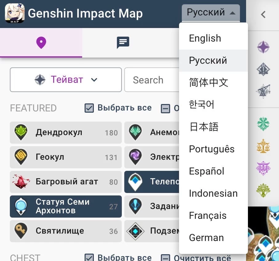 Как пользоваться интерактивной картой Тейвата?