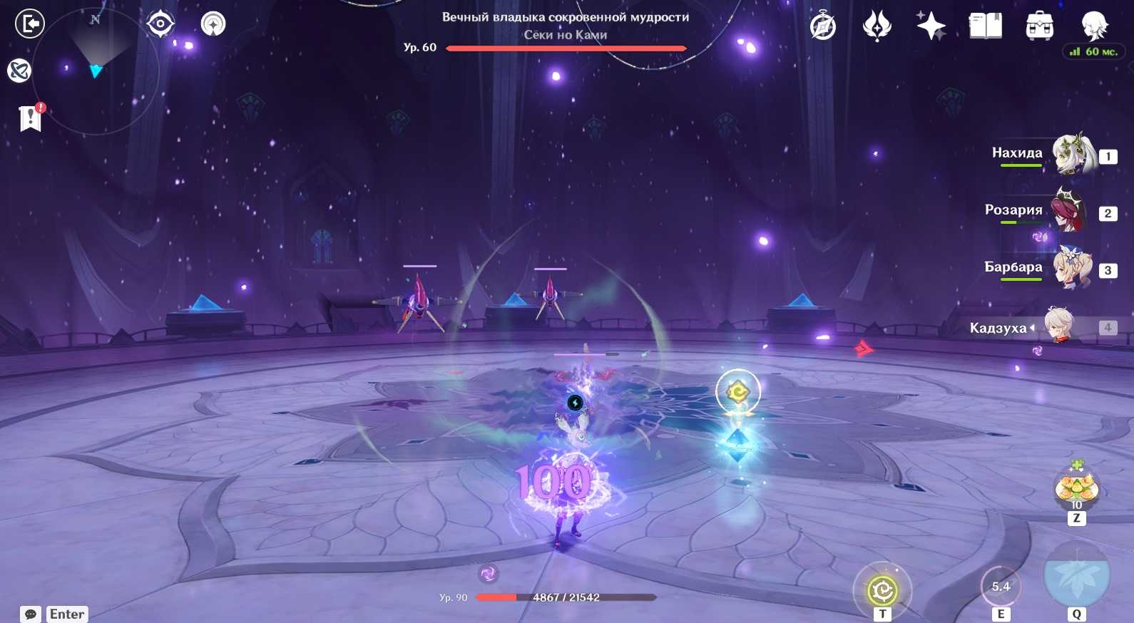 - Крестообразная атака. Босс отмечает на полу Х-образную область и наносит в ее пределах стихийный урон (Гидро и Анемо).