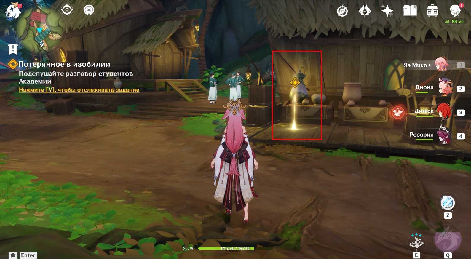 Доберитесь до Порт-Ормос на юге Сумеру и осмотритесь там. Поговорите с Портным, чтобы получить необходимую информацию, а после подслушайте студентов из Академии, подойдя к желтому свечению у дороги.